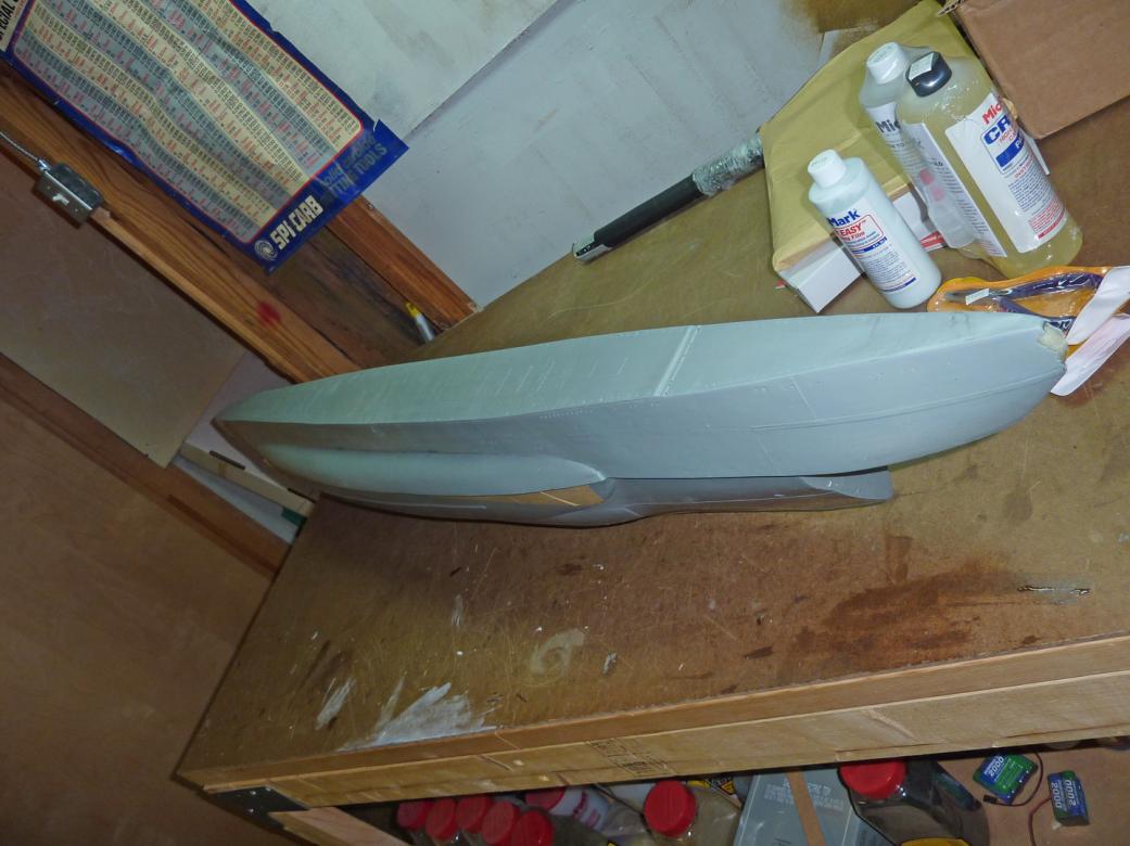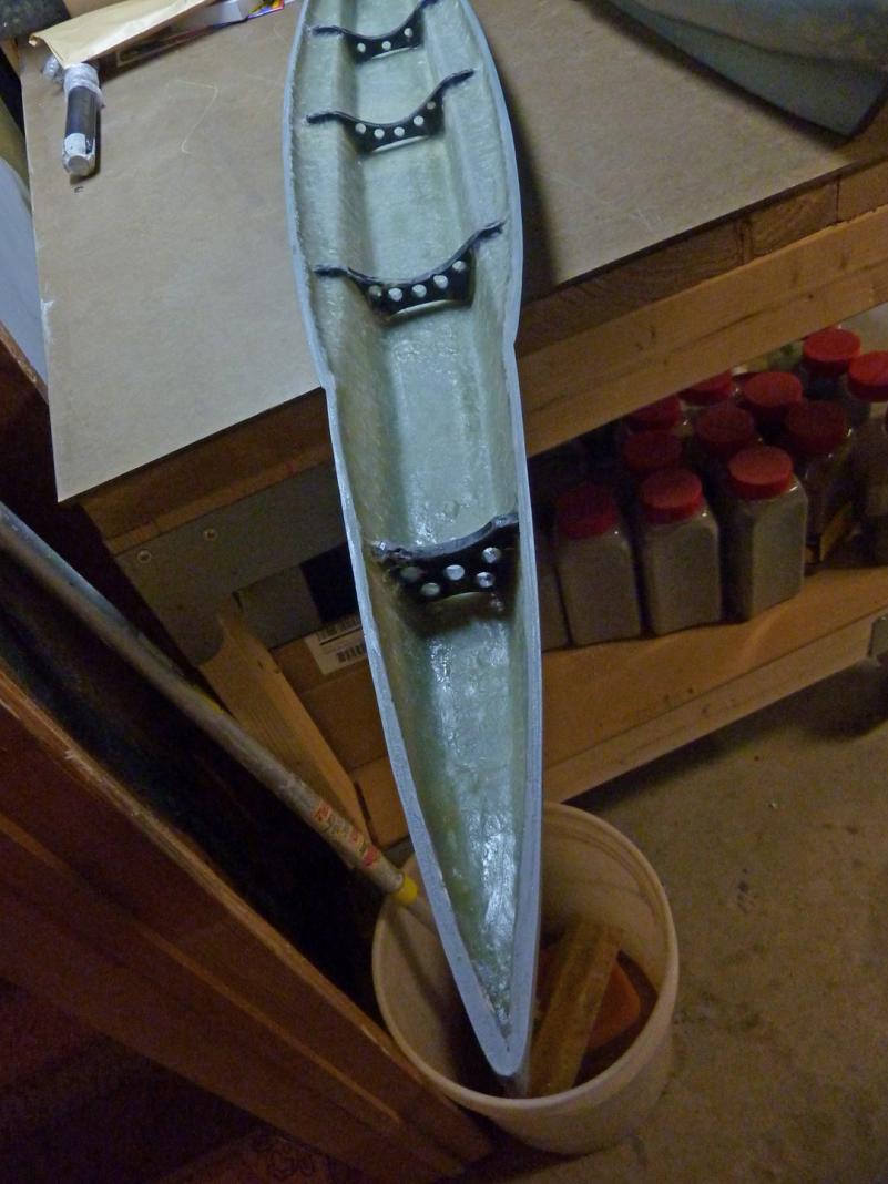 Will deal with the bow problem later. This is beginning to look more like a blessing in disguise.Looks like Chris didn't stick some rovings in the end. I would glass in a GRP or brass plate and build up around it with rovings and glass, sand back and then finish off with putty. Would stick with polyester resin personally, as that is what the hull is moulded in, but the epoxy will do the job.