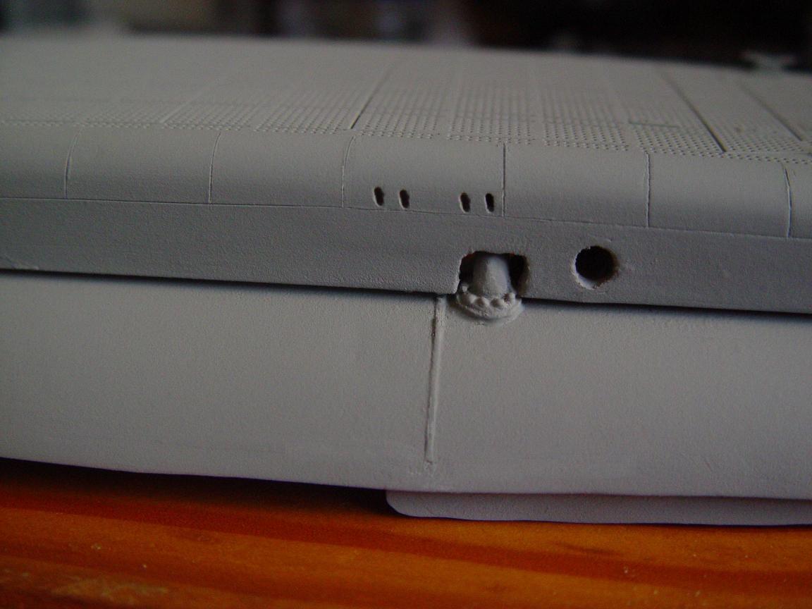 I was able to make that hull cut up under superstructure, so seam would not show, didn't have to fill gap, and can still get SD in and out with no problem. :)