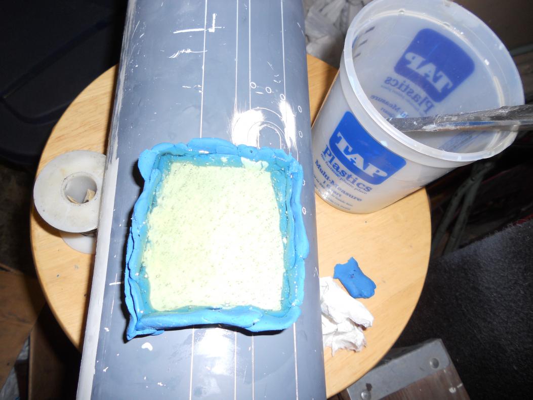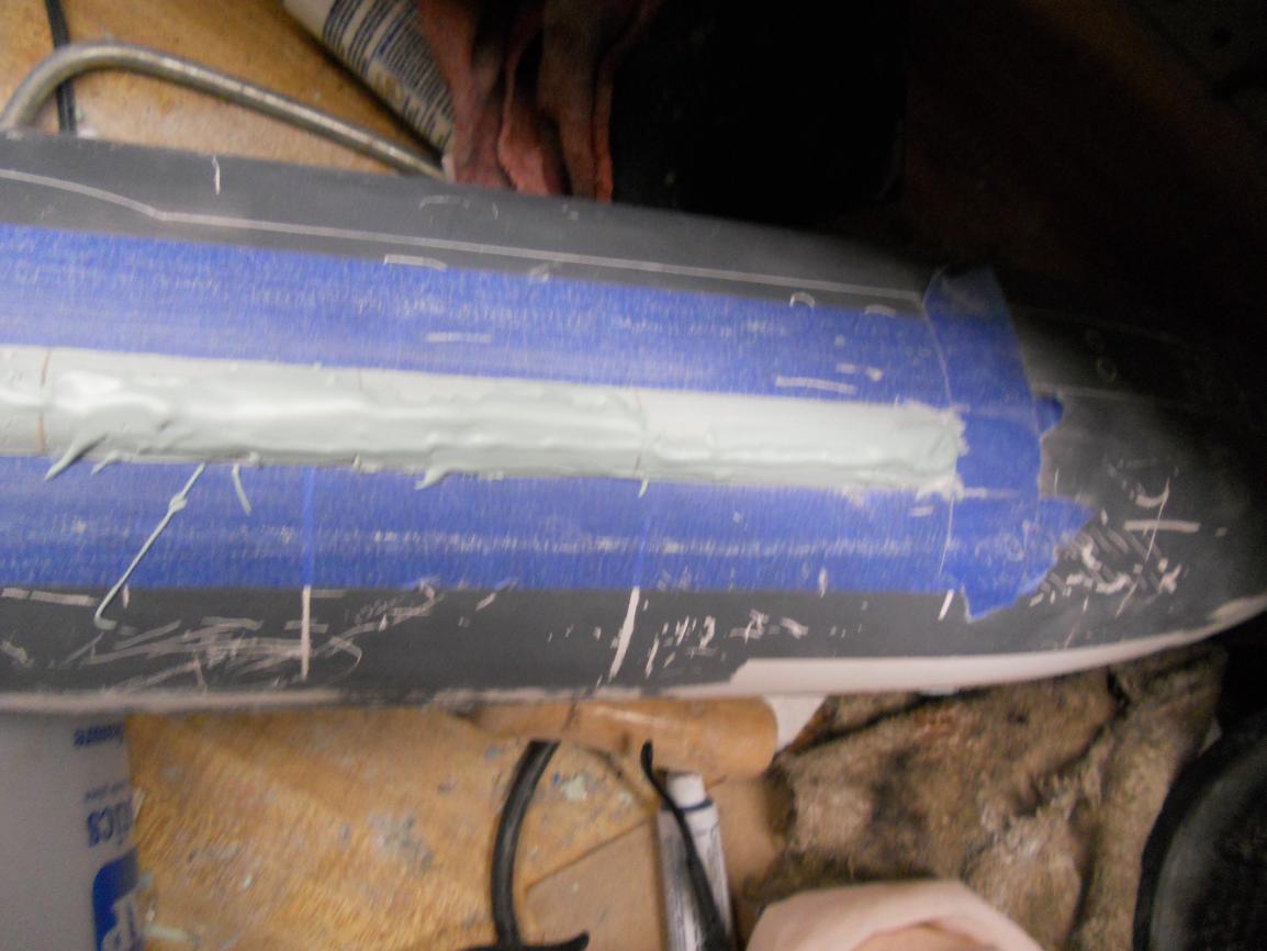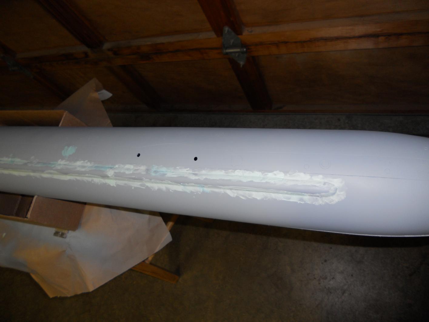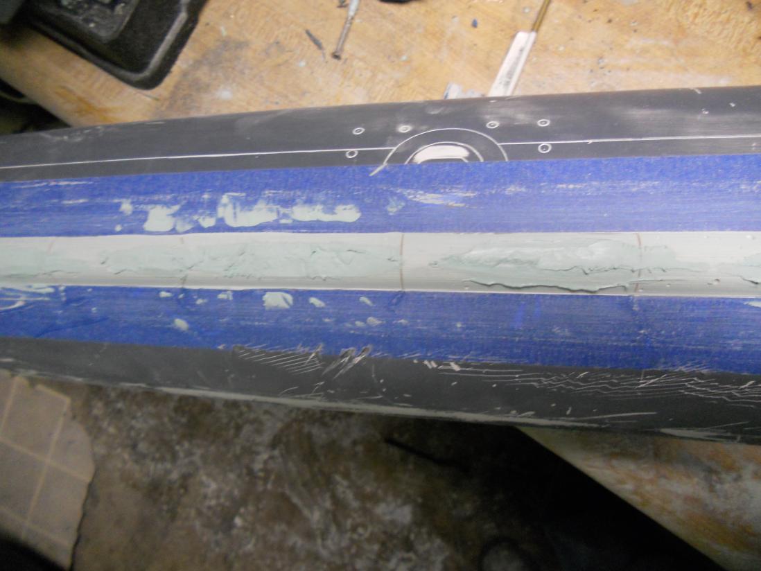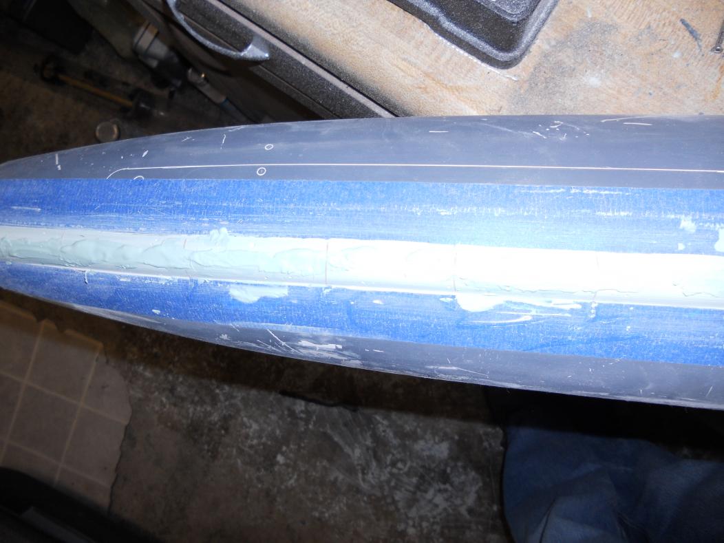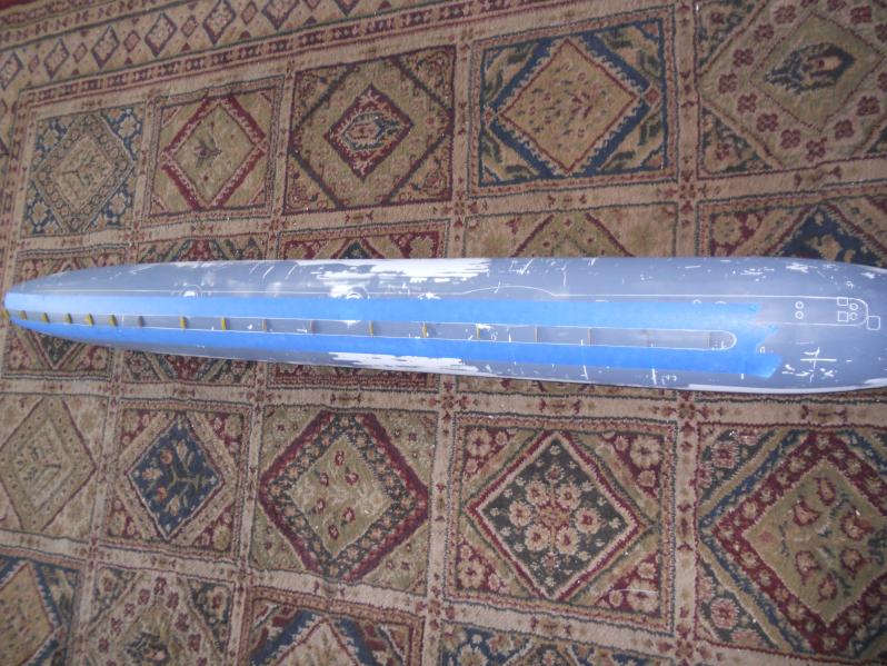 Also, you can see the masking of the lower hull before I filled it with resin and glasscloth.