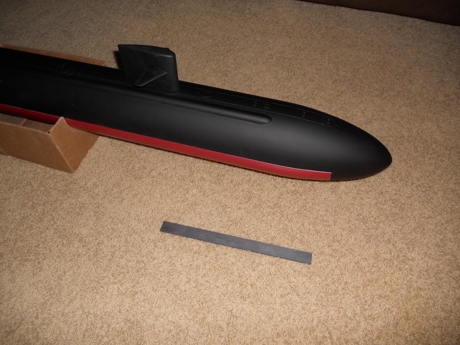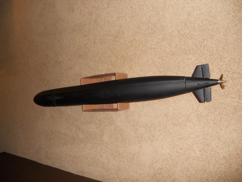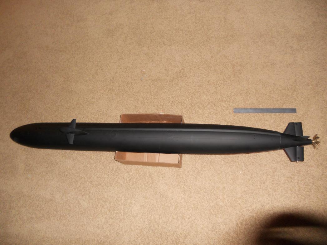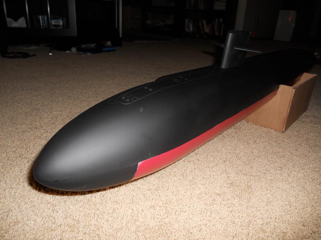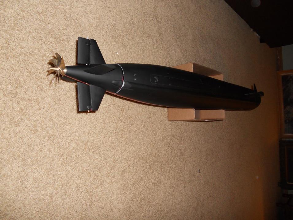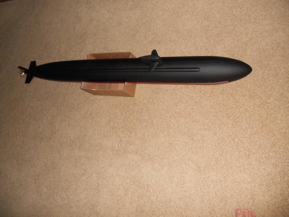 I needed to get some shots of this boat as it is supposed to look, as I was giving them to my granddad...who got me interested in submarines to begin with. Here are a couple with the boat in flat black on the top of the hull, and a (shinier than wanted) red for the anti-fouling on the bottom of the hull. This paint job is going to be finished at a later time, I just needed to get some photos for show and tell.