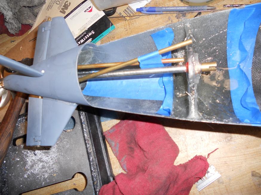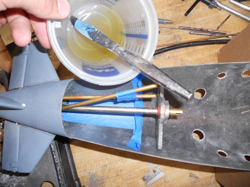 Next thing will be the screw mount for the rear of the Z-cut. This is always tricky, since I dont want the mount to break off the bottom half of the hull, and also need to get the nut for the mouting solidly attached so it doesnt spin. Easier said than done...I've had trouble with this in the past.