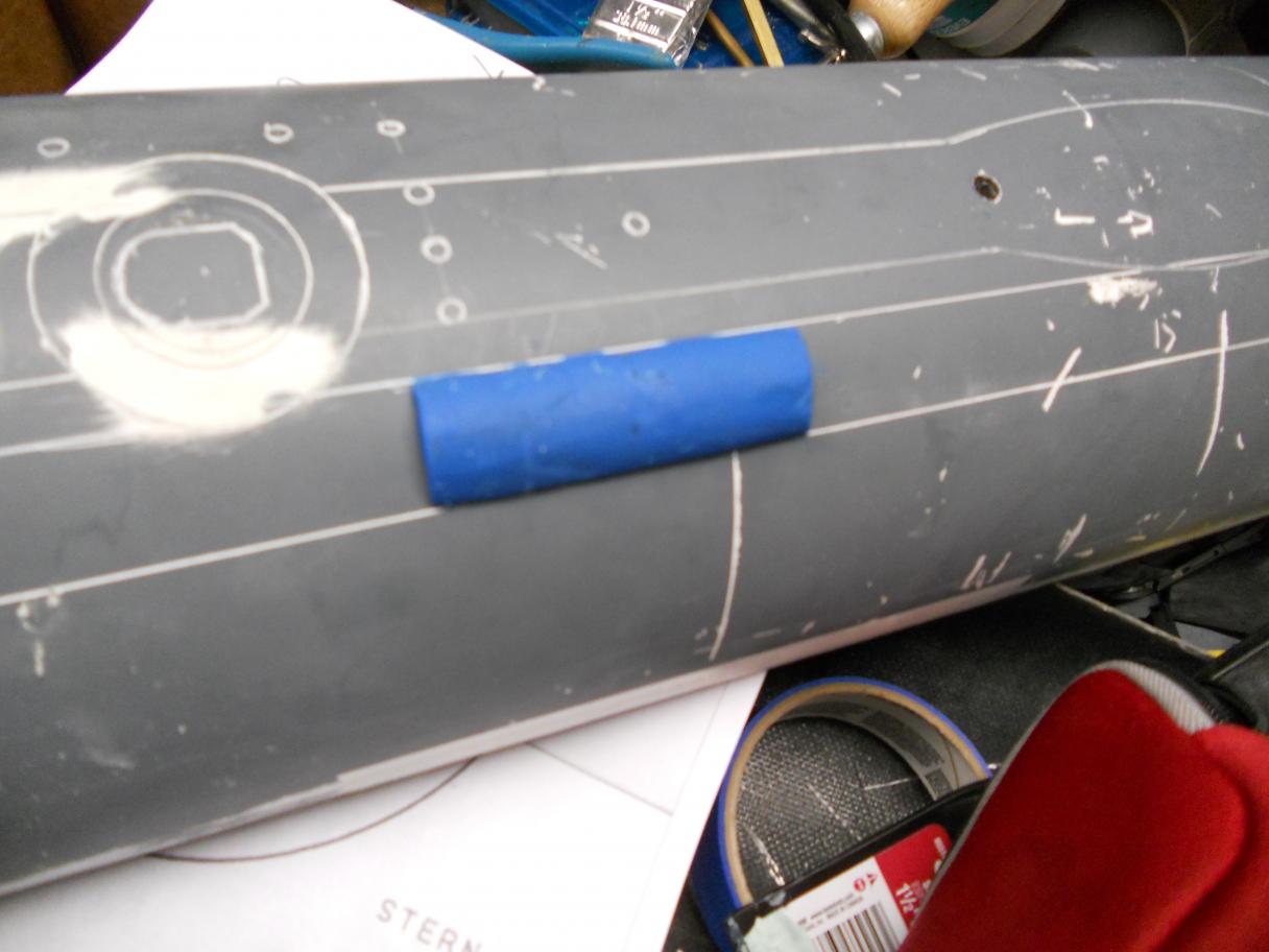 ...I should add, that this block will become a sanding block so that when I use bondo to make the towed array storage tube, I can accurately sand it and shape it. Unfortunately this was not modeled into the fiberglass hull I purchased.