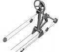 Here's a first sketch of the pulley mechanism that was used to position the trim weights left and right of the commanding officer (back seat). By shifting the control stick back and forth a geared frame set an axis in motion that scrolled the wires that were connected to the trim weights. The Kinda medieval ....