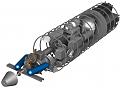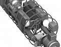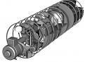 Further progress....the electric motor was coupled to the prop shaft via a two-stage belt gear reduction. That and the thrust bearing block are in place. Left and right to the prop shaft are a compressed air and an oxygen bottle respectively.