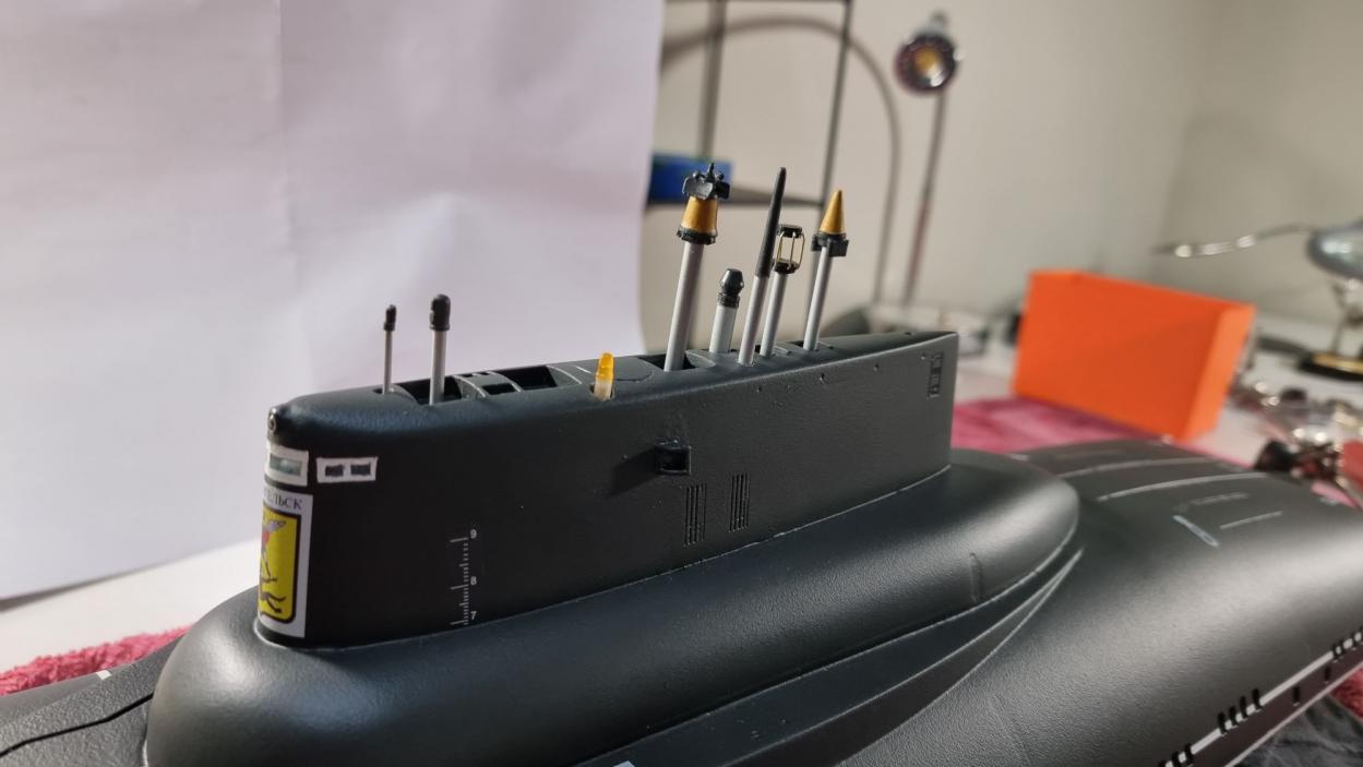 The other significant mod that happened along the way was the change to the top of the sail design. I realised the files had a flat top, and I wanted something closer to the real design. LEDs for the Nav, front and warning light will operate in different modes, depending on the scope status.