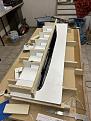 To reinforce the vertical parting plane, I installed some brackets made of chop board.......next are some holes for the indexing pins and then I'll have to seal the gap between hull and board.