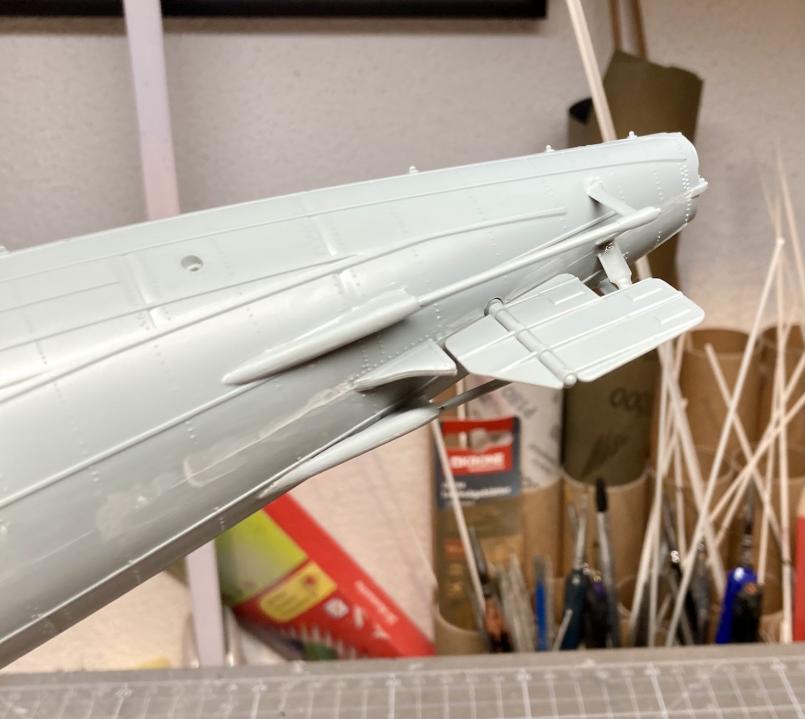 On the left side tank one can also the opening for the pneumatic actuaor for the forward antennae mast nicely hidden under a PE detail by RC Subs