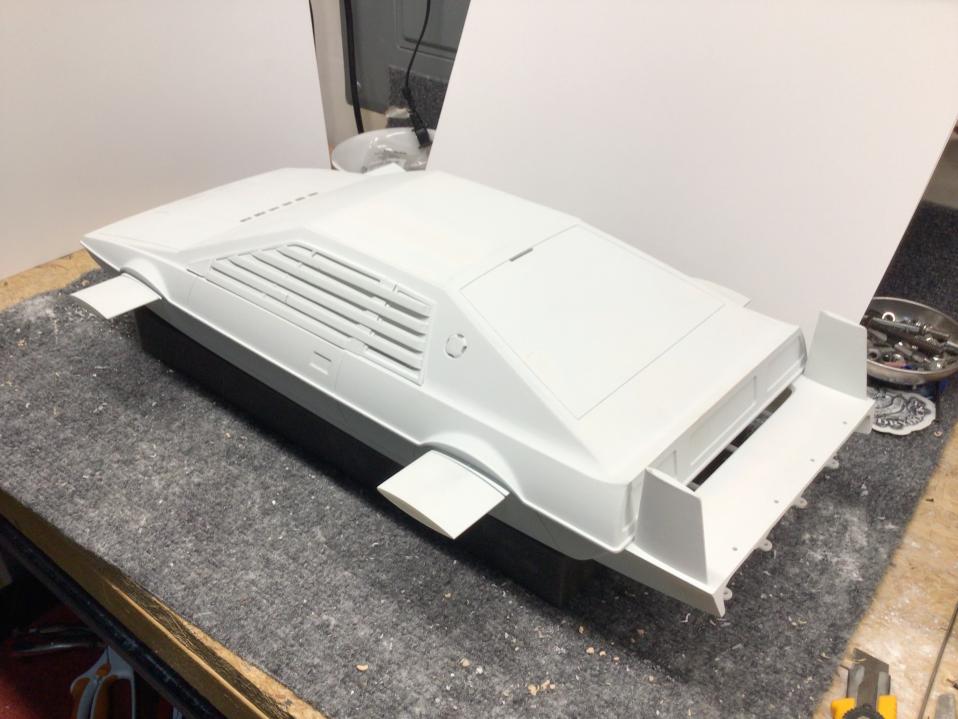 Schmitty, Thanks for the kind words and constructive criticism. As a 15 year CAD surfacer for a big car manufacturer, I can appreciate your eye seeing the differences between the road car and submarine model. I modeled the movie prop which has a TON of low spots, straight / negative lines and poor bodywork. It was a challenge to go against my training to build a body with correct curvatures and styling. That being said, I am aware of some compromises I made in the interest of time or oversight. Some will be rectified in primer.