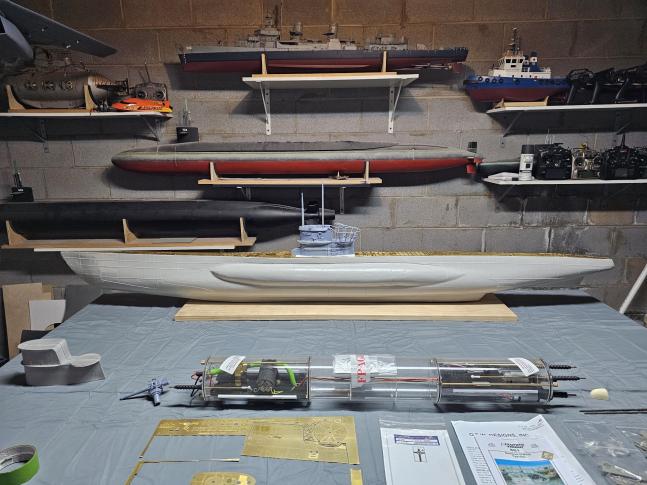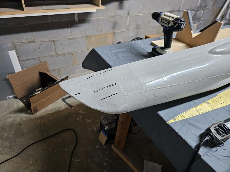 A bit of a diversion from this project has been one of Bob's 5' sharks. I had it ready for trimming at Subfest but Helene changed our plans. Oh well. If all goes well it will swim at Subfest Redux.