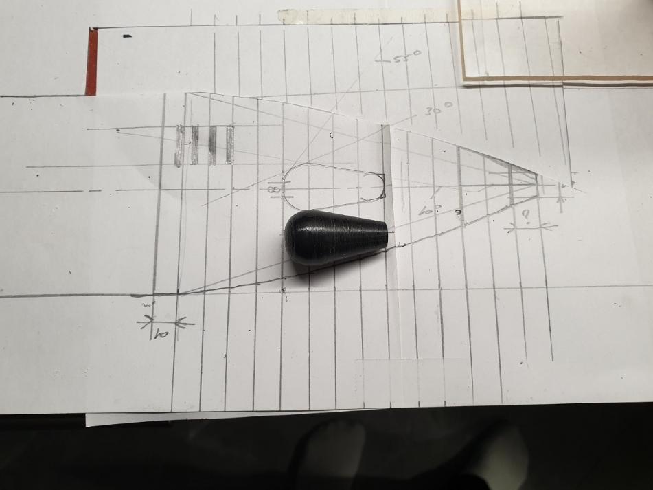 Made this drawing to the correct size, divided the rearpart to get me some measurements to make that end with styrodure.