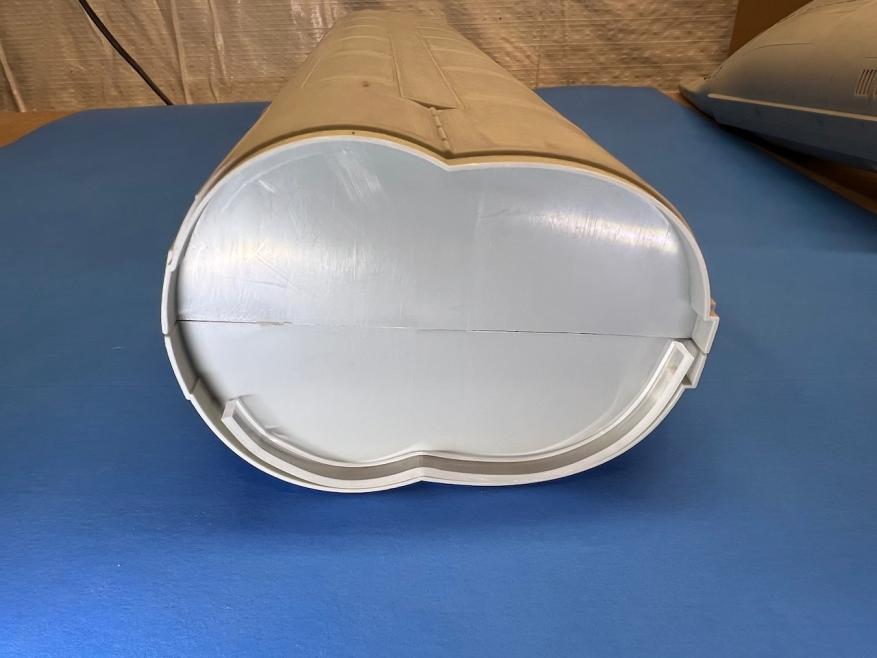 The aft section slides over the forward section. I used backlighting to highlight the joint where the aft section slides over the forward section if they were to be glued and marked the end of the joint.