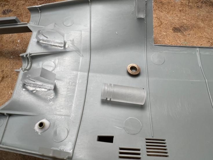 Here are the machine screws holding the front and aft sections together. The topmost screw was added after I made the deck cut. Once the cut was done I needed to add a small section of acrylic and add that top screw as I guess I did not get something right.