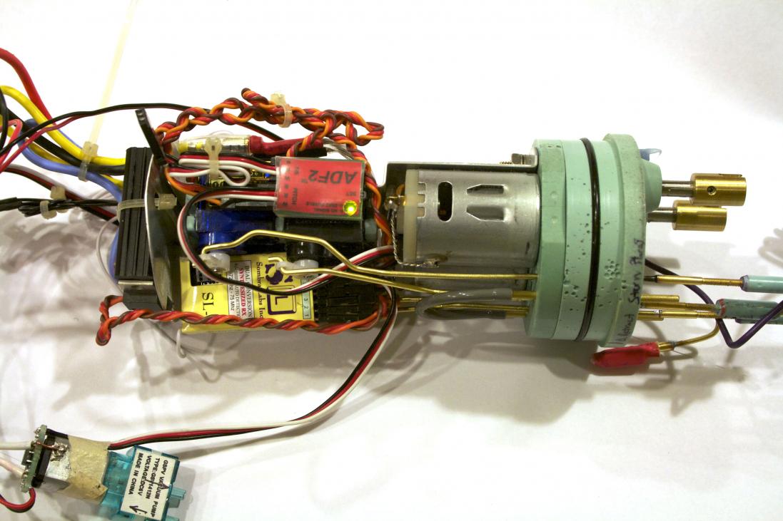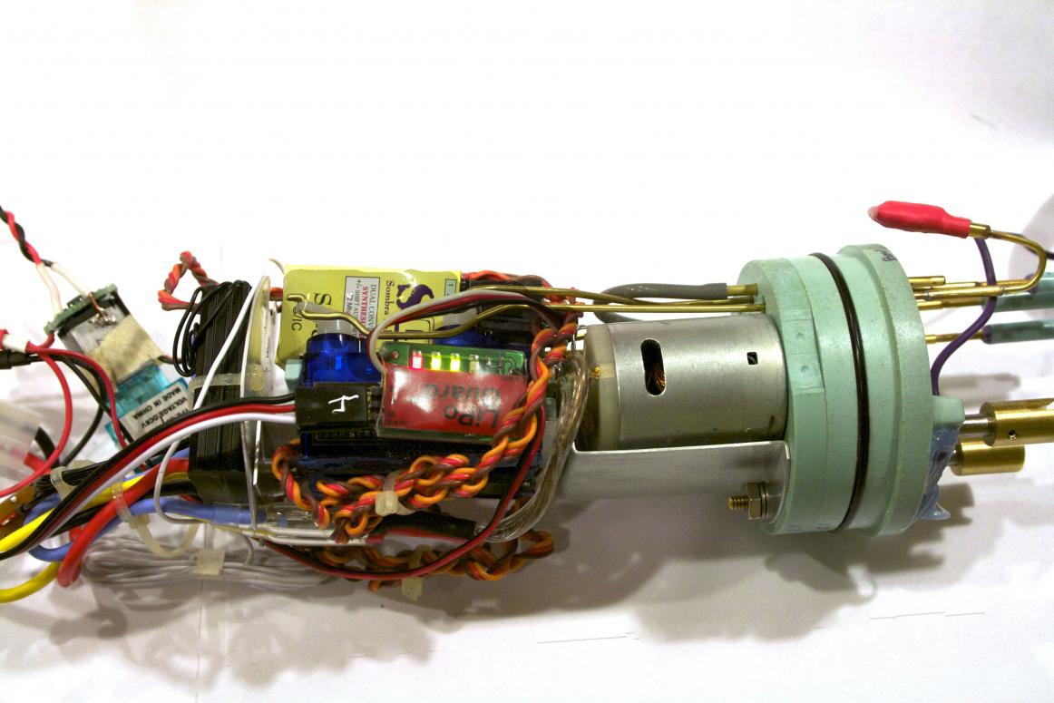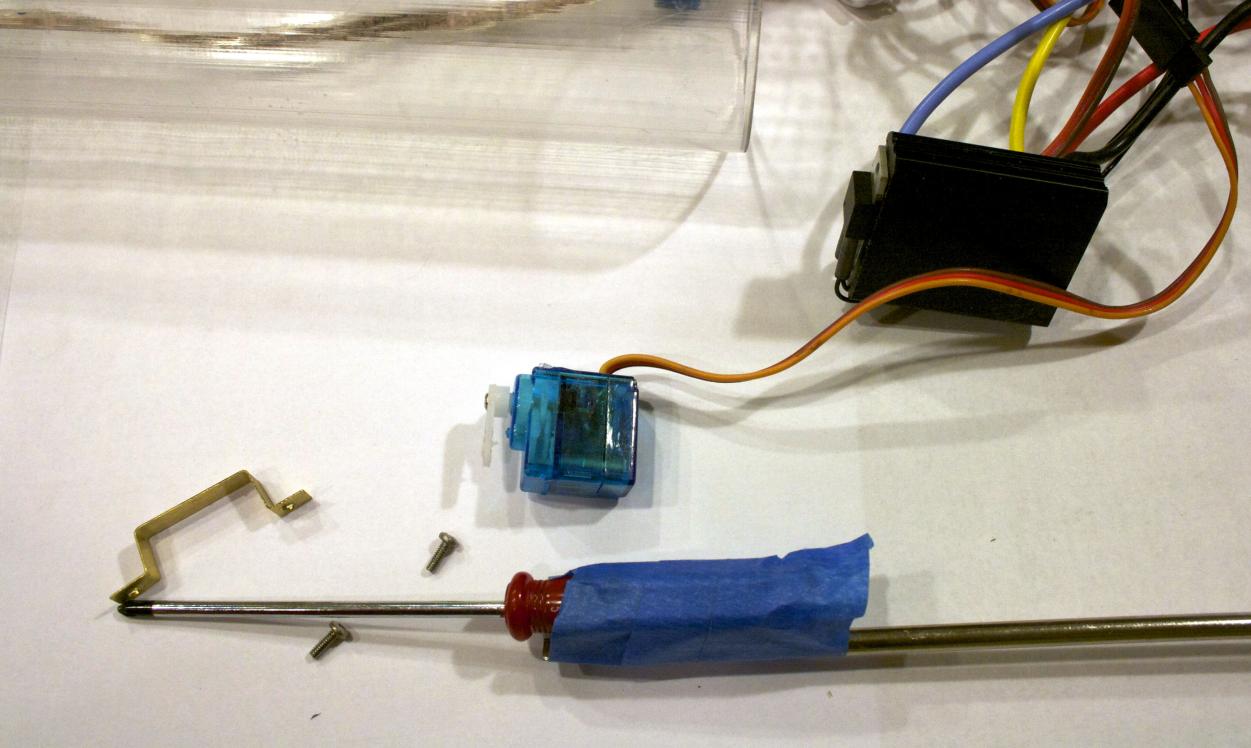 Success! I did not have enough travel either Tom. So I dug into the airplane hardware box and came up with an old servo horn. I bored out the center the same size as my rod and installed a ball end a little closer to the main rod. Then I had to adjust the end point travel on the radio and I seem to have it somewhat reliable and folding almost all the way up. I may redrill the control horn that came with the kit to move the ball inboard. My brain is way too tired to even attempt the auto level and lipo saver. I'll leave that for another night.