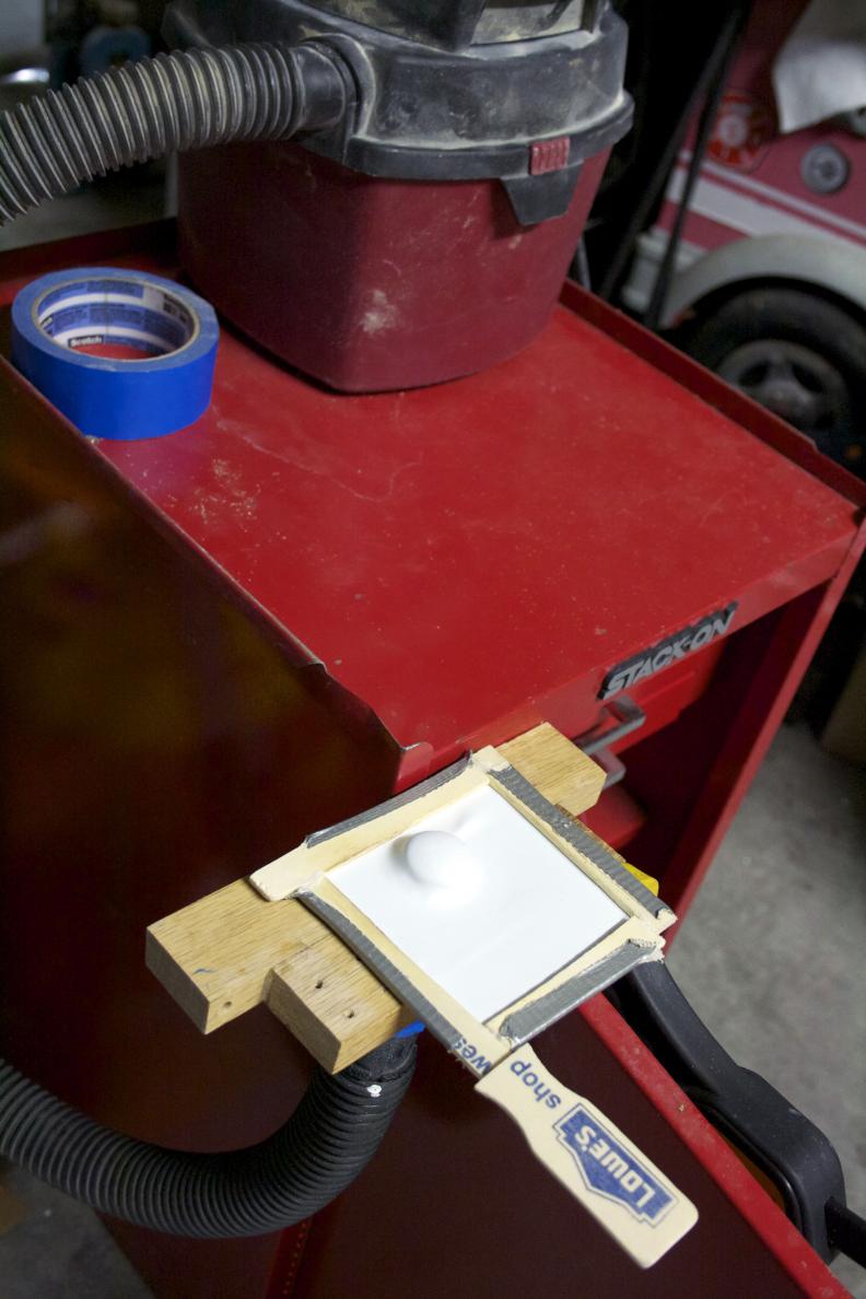 Waiting for fuse and I am bored. So I thought I would make a detail for the conning tower. The conning tower barrel, not the whole barrel just enough to give the illusion of one being there. Checking out references. Cut out a pattern shaped some clay using the power and let it dry. The last time I vacuum formed was when I was 7. It was a time when toys were good and dangerous. I have not vacuum formed since, so this was a fun first. I glued a couple of oak scrap blocks together. I took some of that stuff I made my hull bulkheads out of and drilled holes on a grid I drew out. Cut out two different size holes. One for the hose on the bottom and a larger hole for under the plate. Glued that perforated plate to the oak that I drilled out with a hole saw. Heated the plastic in a make-shift frame. Turned on the vacuum and allowed the suction to bring the plastic around my clay plug. Then used the heat gun to bring in the edges more. It came out nice enough. It looks good in there