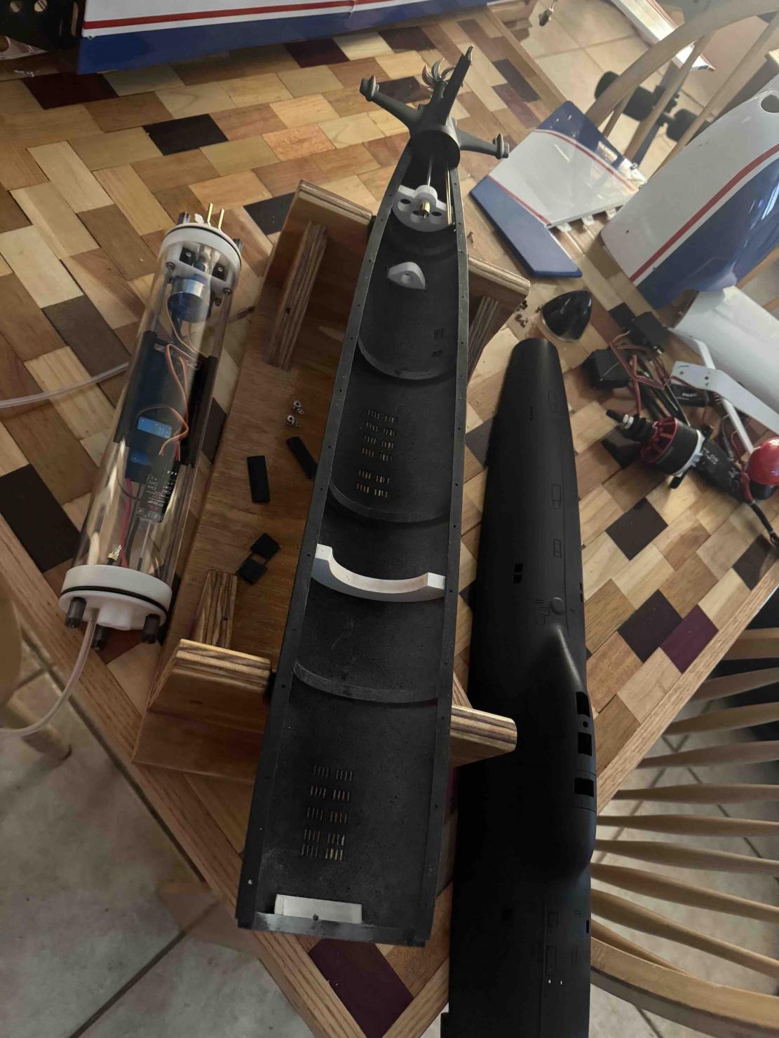 Here are some 'thought starters' to help you along the path. This is a 1/96 Scaleshipyard ALFA I'm outfitting for r/c use:First time posting anywhere, to be honest, took me about 45 minutes to figure out where to start my post properly. Right before the Subfest 2024 Redux, I purchased said model from Mr. Martin. I'm not too crazy about 3D printed hulls/kit but truth be told, this one is pretty tough. It comes with ribs for each section being glued together. I'll be posting pictures, though I'm still not sure how. So far, I've glued the hull together and drilled out the rudder stock and aft plane trunnions (not sure the proper term). I've primed the upper hull as the lower hull still needs sanding. discovered that the upper hull still needs some smoothing out on the joints. I'll be working quite a few other projects so it may be a bit slow going, but I'll post when I get anything done. Thank you all.