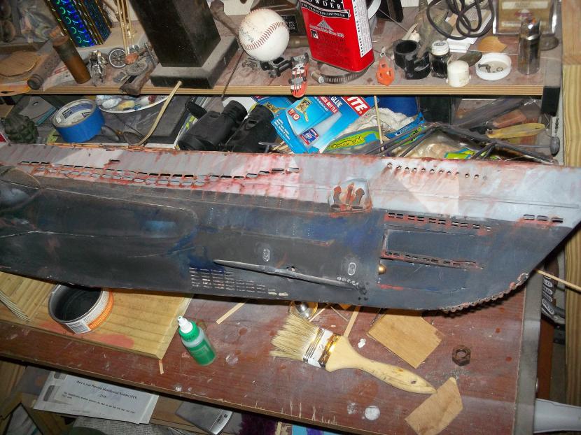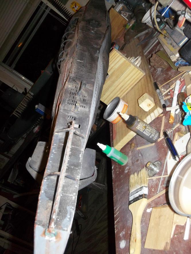started with the DKM blueprints of a type VIIc and a Revell 1/72 as a guide for approximate measurements and detail I used PVC and wood to build the hull
