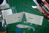 Struth... To honest I never thought about the effect on the pe with the differing temperatures... Doh!! I got hung up on getting a model that looks as good out of as well as in the water... Still live n learn I'll just keep an eye on it through the hotter months here in Queensland. I have finished gluing and filling the rear Cadillac fins, connected all the wires for the sail and fin lights to one connection point and drilled the hole for the mounting screw and set it aside with the superstructure fitted securely to help it conform a bit. Whilst I work on the next assembly, the flying sub bay and flood lights. Is there a rule of thumb regarding the painting and detailing of parts as you go? I only ask as I would like to have the FS bay painted and detailed before final installation.
