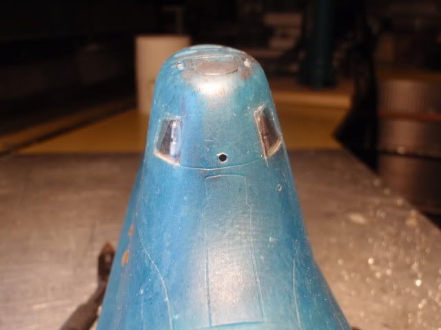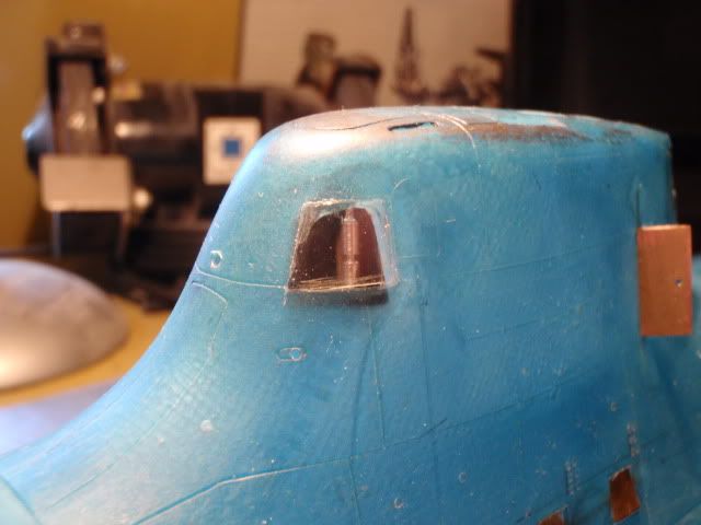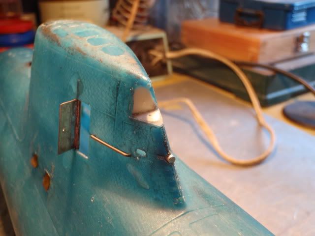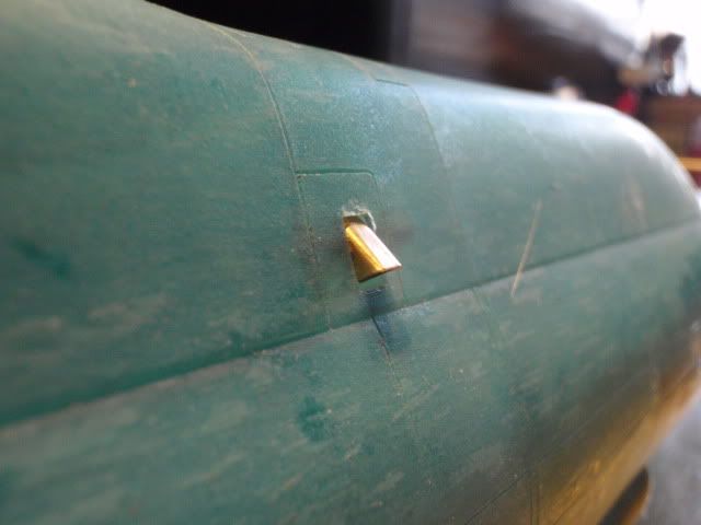 Started with filling up the cutted space for the rear navlight, added also the light lower inside the tower, done this with a scrap piece of aluminum.