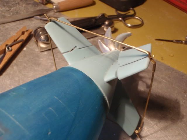 This is the first stage, just to see if it can work, i allready know now that the diameter of the rods is to big, have to change that, for me it proving that i can place the guidingwires without obstructing the tail feathers.