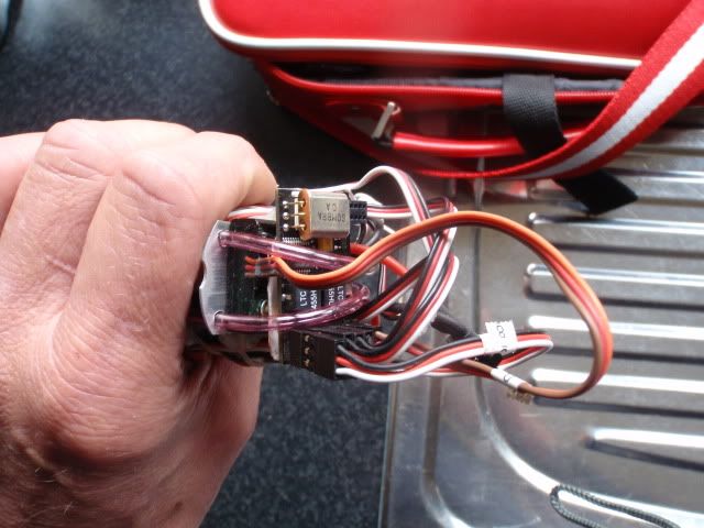 The final step was adding the SL8 on top of the ESC, still amazed about the size, compared to the old class receivers this is a little gigant.