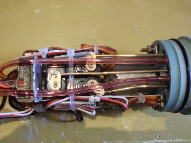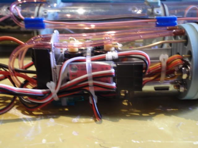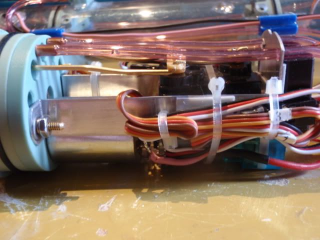 The V tail mixer is hidden under the cables, using the small T-raps to make it more organised.
