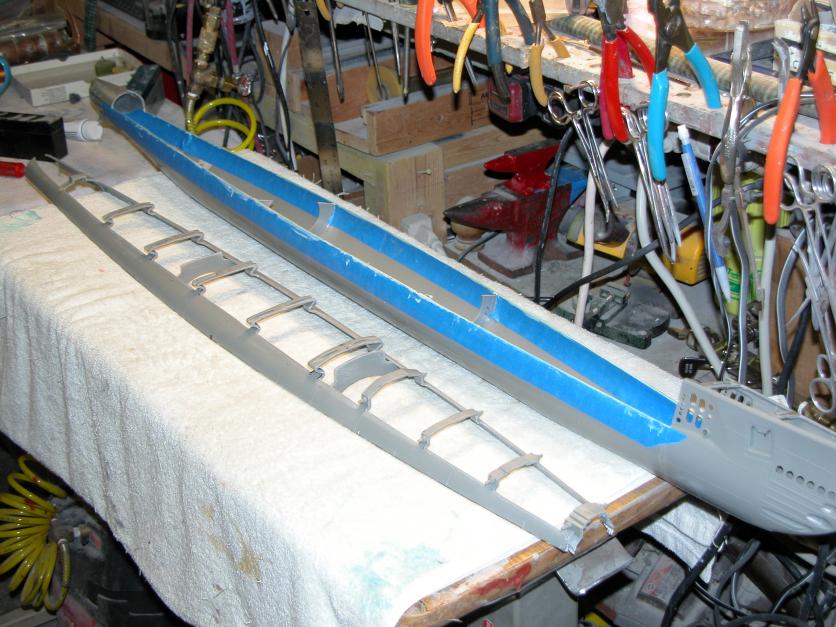 I have cut the upper hull from the lower as the Dvd showed. It came out good. After gluing the inner hull supports and the upper deck attachments as shown, there's an overlapping in the center area. The upper hull/deck overlaps the lower hull about 1/16" on both sides. The bow and stern are true on. Is this normal ? Whats the best way to correct it? I do have a few ideas but would like some expert feed back.