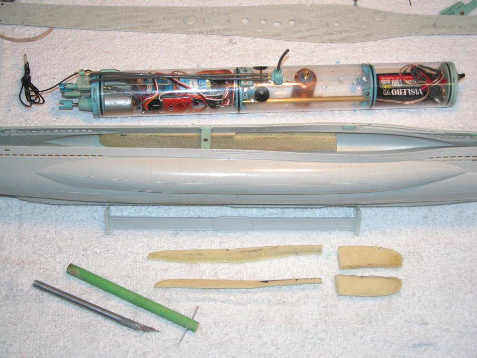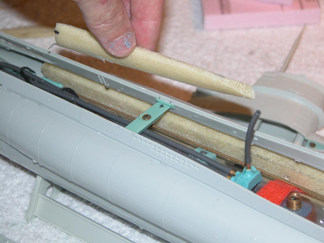 Again, don't make a big deal out the foam you're going to fill the 'bulges' in the sides of the hull. Some hunks of foam, worked with sandpaper and knife will do the job.