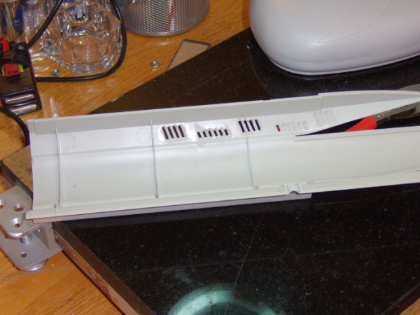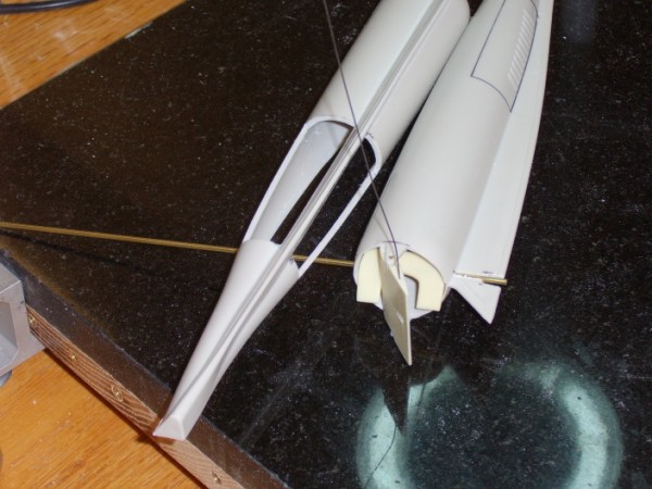 My first question is this. The three rudders are connected together by a finely crafted crossbar made of white metal that comes with the fittings kit. In order to use it, a small vertical hole must be drilled in the end of each rudder. It must be placed so that it intersects the small rectangular hole in the rudder. Even though DMIII states on the DVD that he will show us how to drill these holes, he never does, on my DVD at least. I would like to know what size hole that has to be and what size wire is used in it. Any hint as to how to drill them perfectly the first time would also be greatly appreciated. (I think I've got it figured out but I'm always willing to listen to my betters before I forge ahead and blow it.)