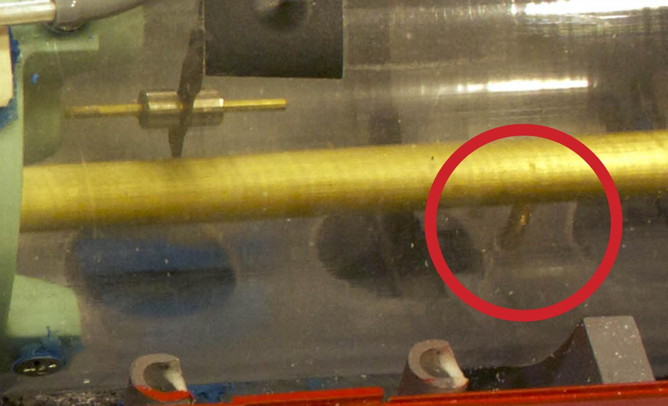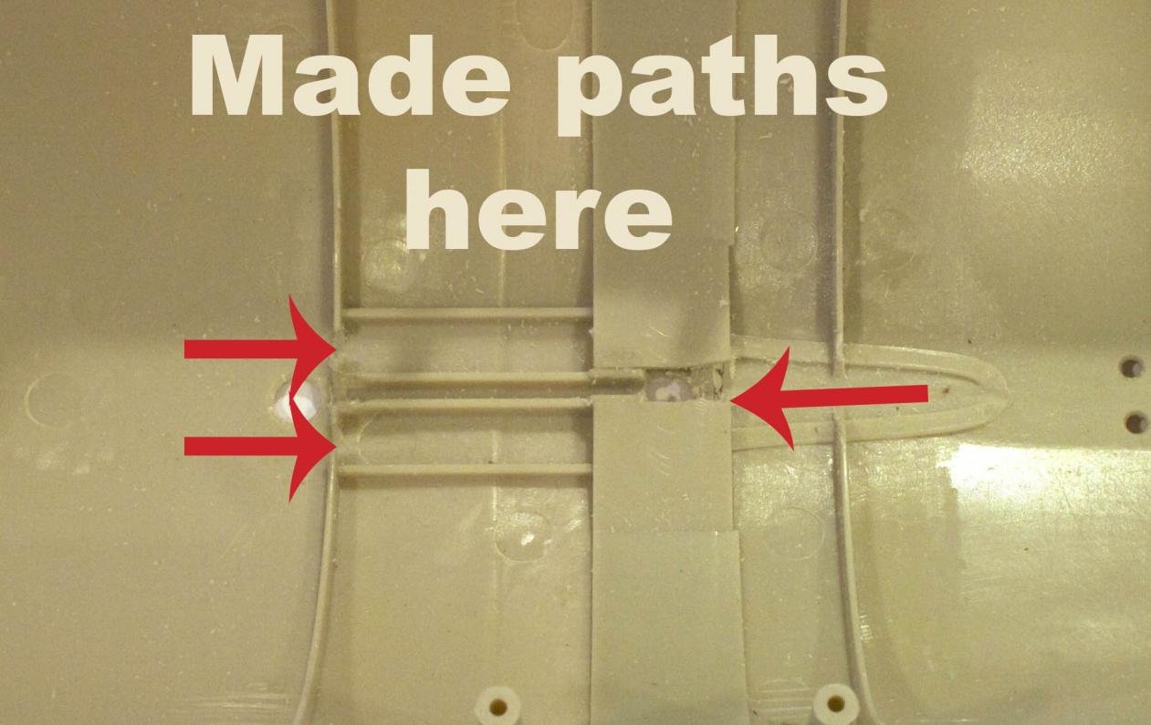 Thanks Tom. Actually my earlier posting was incorrect on the detail of where the ballast tank vents in relation to the sail. It actually vents right underneath the last screw on the sail way back on the tip end closest to the stern. Therefore in the accompanying picture you can see where I have the Xacto knife pointing. This is the spot where the ballast tank will vent air. At the top of the picture you can see a radial reinforcing ring cast into the hull. I think that will help slow the air bubbles. If we put a hole in the upper hull right forward of that ring, that will help spill out the air.