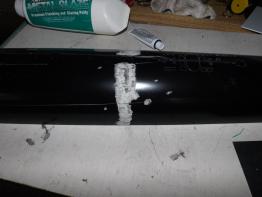 The spot putty that I was using is the Bondo brand ,single part red putty. I noticed than in a few spots it was eating the old paint. Then I looked on the label and saw that it contained Xylene, toluene and some other very nasty sounding chemicals. I then acquired some Bondo, two part professional spot putty. It didnt have all those solvents in it. It has worked much better too. Today I pretty much finished the sanding and filling to my satisfaction. Now I need to put some thin CA on the hull seem that indicates the water line so that tommorrow I can cut in the new line. Then I gotta wet sand the whole upper hull, to accept paint. We r getting thar. Hold on to ya tatters.IT TAKES GREAT INTELLIGENCE TO FAKE SUCH STUPIDITY!Comment