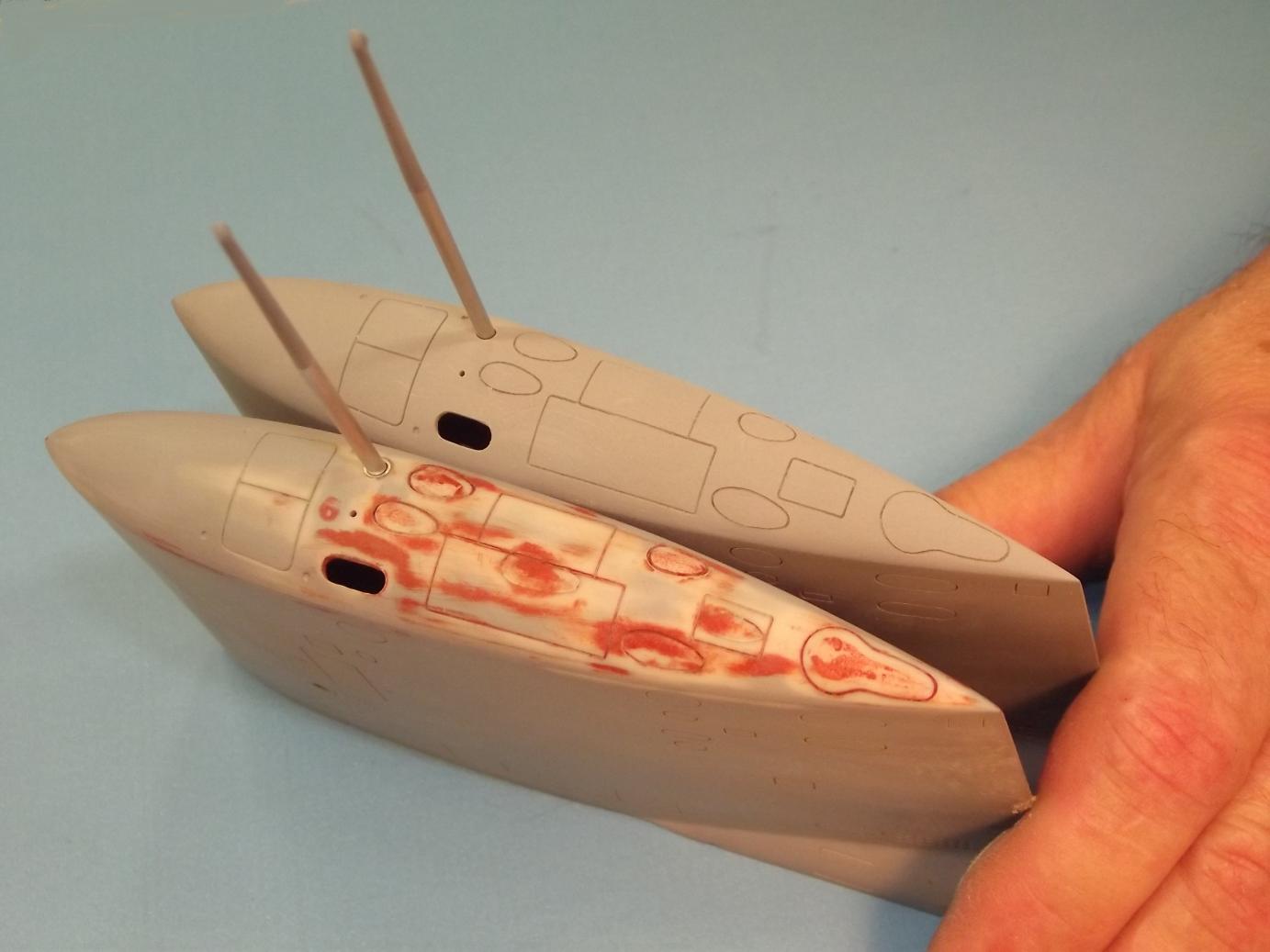 I just realized something. I dont want all those masts sticking up on my Scamp. All I want is the scope. I was hoping to see a sail top without all those depressions where the masts go. Ill need to fill them in with something. Maybe I can take the top to each mast and slice it 1/16' thick or so and then plug the hole with that. That way it will have a nice line around it and will actually look like there is a telescoping mast underneath. Any thoughts on that?Last edited by greenman407; 06-06-2013, 02:05 PM.IT TAKES GREAT INTELLIGENCE TO FAKE SUCH STUPIDITY!Comment