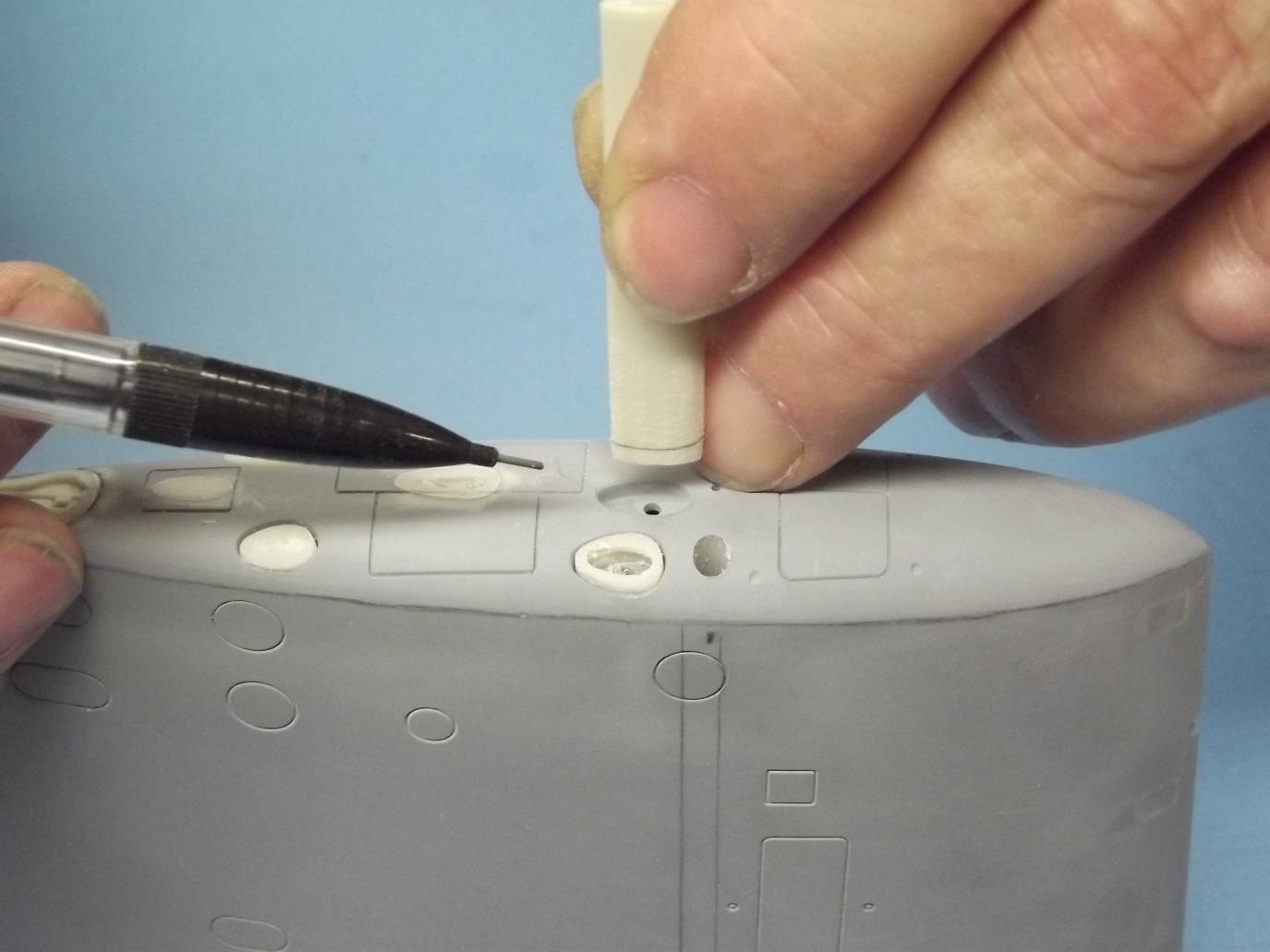 Perhaps the solution Mark is to decapitate the heads of the masts that you don't want sticking up and glue these in their respective slots -thus depicting these in the lowered position.I just realized something. I dont want all those masts sticking up on my Scamp. All I want is the scope. I was hoping to see a sail top without all those depressions where the masts go. Ill need to fill them in with something. Maybe I can take the top to each mast and slice it 1/16' thick or so and then plug the hole with that. That way it will have a nice line around it and will actually look like there is a telescoping mast underneath. Any thoughts on that?[ATTACH=CONFIG]20557[/ATTACH]