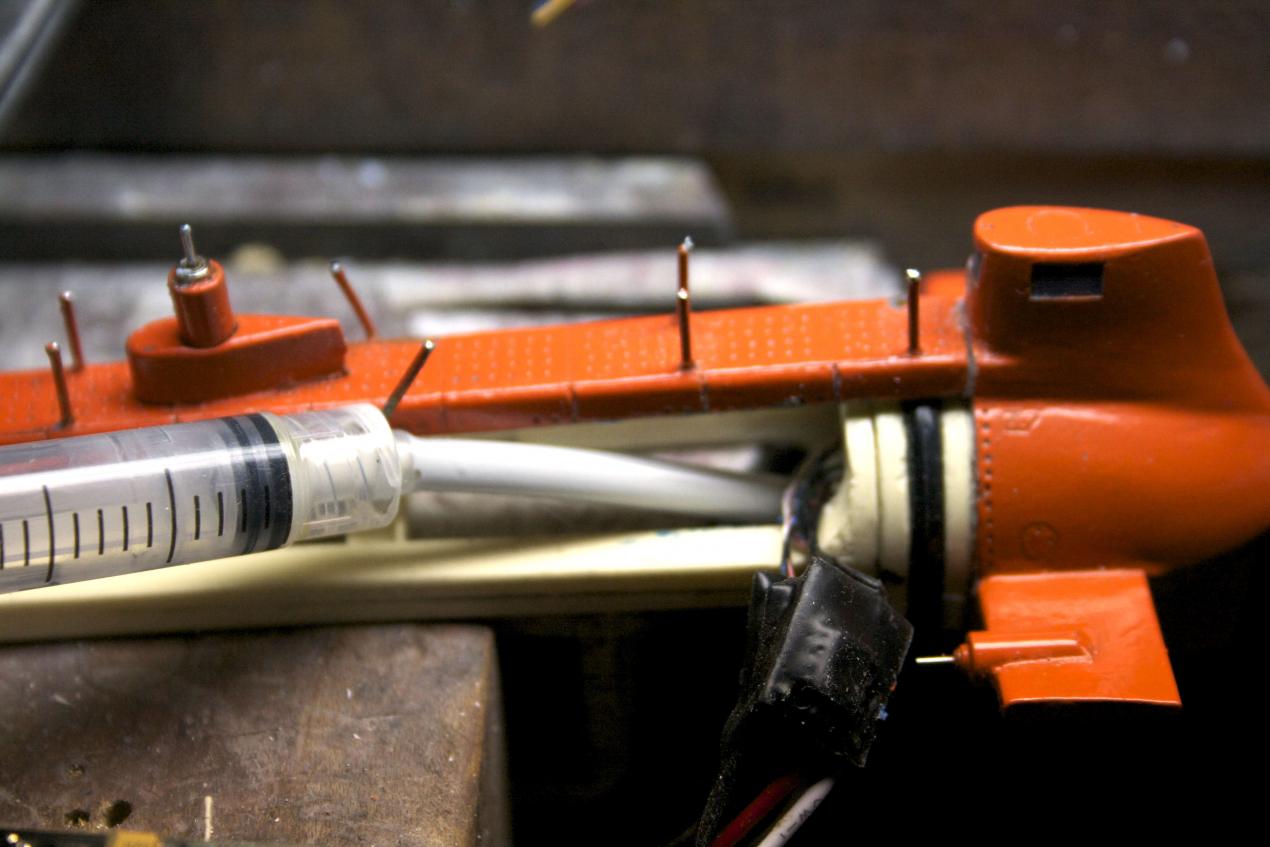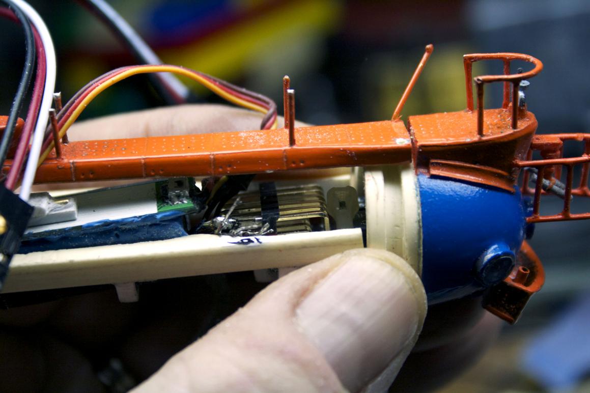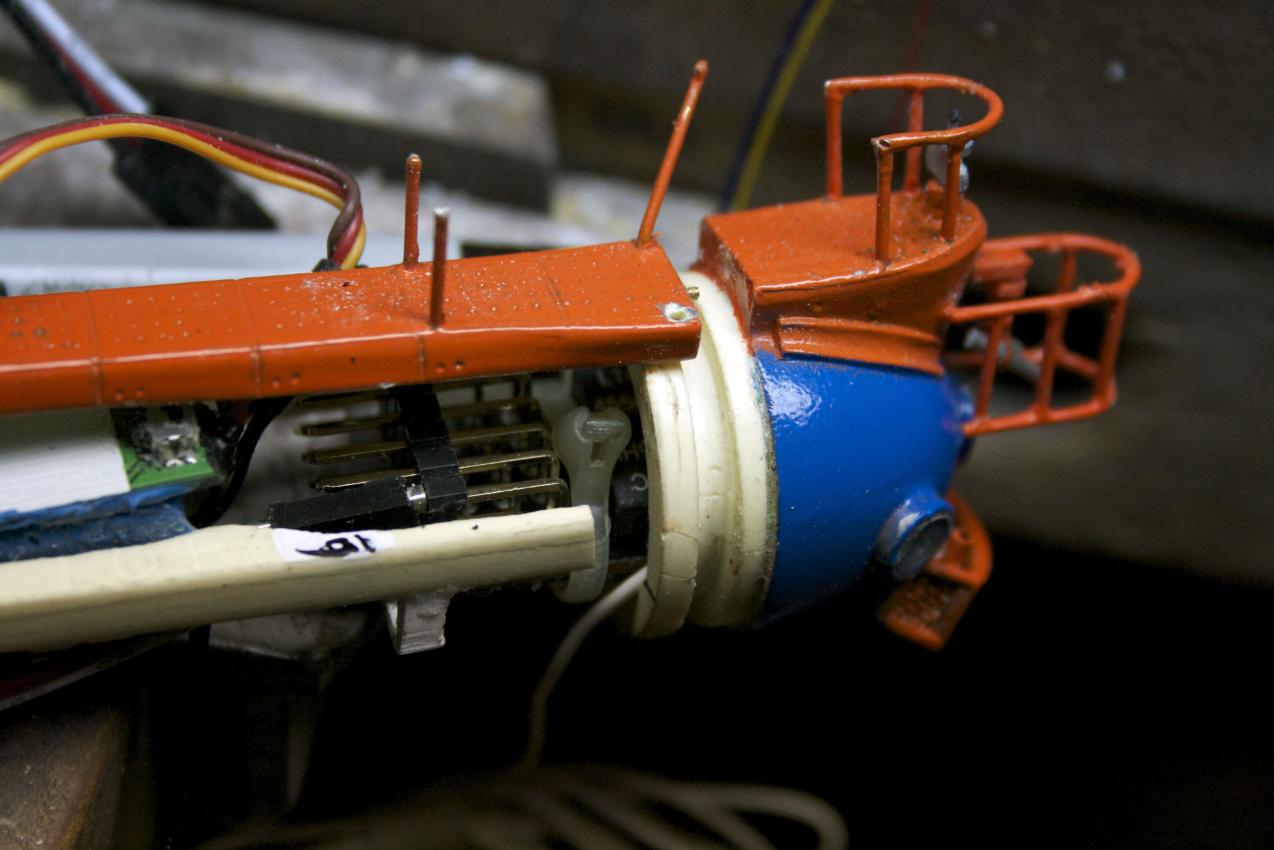 Excellent work on that tiny sub Tom, did the same trick with the cables for running the servo's in the front part of my 212 SD, i got only four wires for running two servo's at seperate channels, keep up the good work.