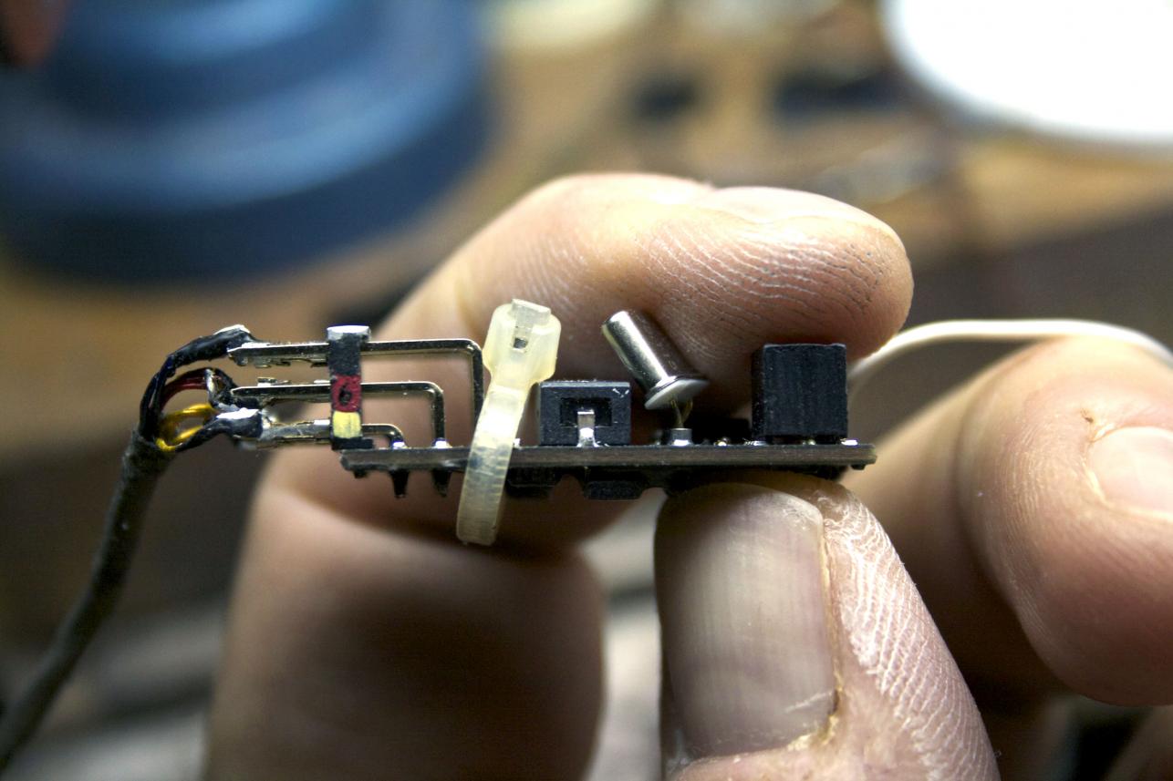 The RX is fit it into the bow, a little shaving on the bow piece where the RX board is. It did not take much for it to go in, the crystal needed to be bent at an angle other than that, it went well. (cue the music)