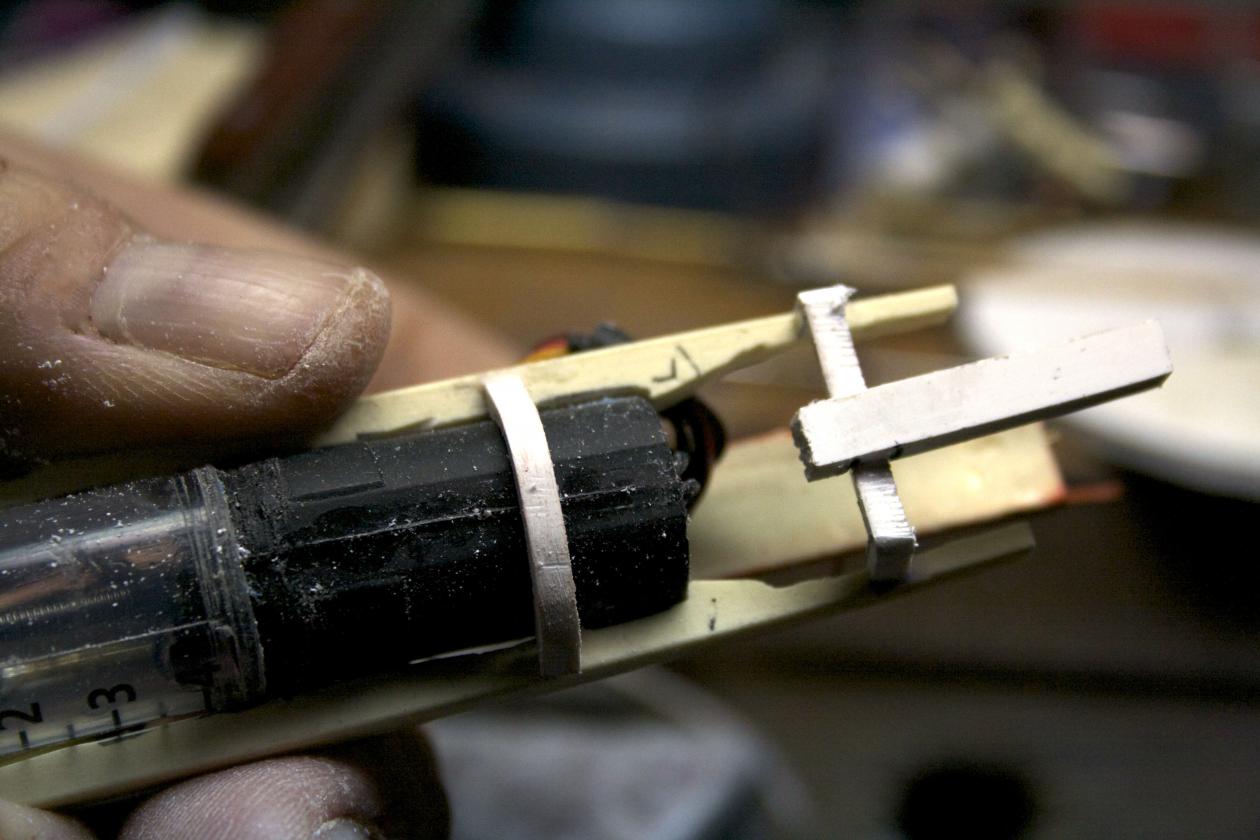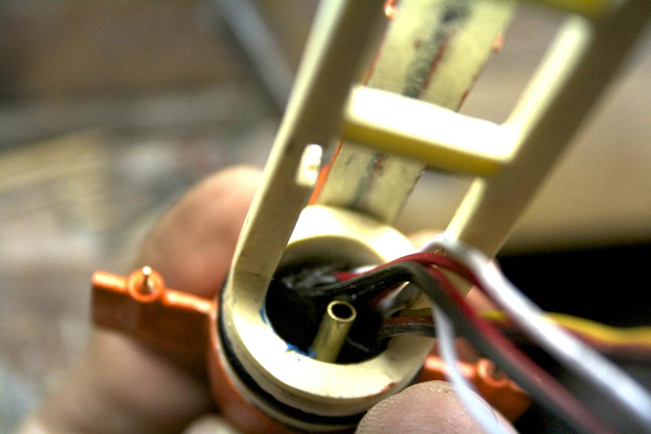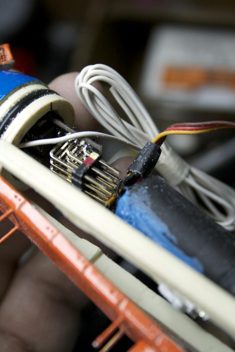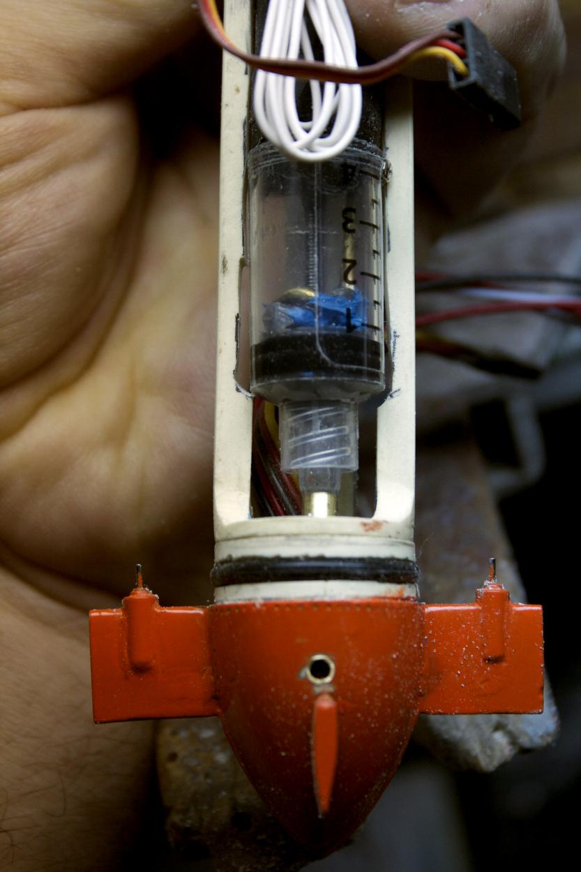 There several ways that I can tackle this mis calculation. Since the news of Lepton 6 not going to be made in the 75Mhz, I am reluctant to tear the receiver pins apart, so I am left with flipping the ballast piston around and I can do a off-center install, or create a wiring harness which would run the necessary wires to the servos......then I could buy a cheap GWS RX instead, it is shorter in length, but not as good. I could shelve this until Kevin creates the nano sub atomic circuit board, (he is such an over achiever).