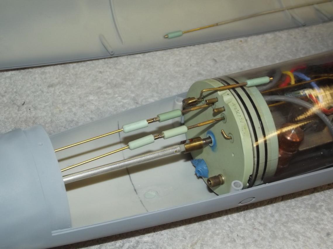 Once installed and in the sub that is where a little frustration set in. I honestly though that Russian gremlins had found the sub. It seemed that with the SD installed and the s.a.s tested water made its way into the engine compartment. I will be honest most of my tub test were at night after 8.30pm on average after work. So my brain was probably not as sharp or quick as it should've been. It took more time than I will admit to, in realizing that any water being drawn into the system seems like its coming via the main induction vent in the sail. But to be sure I have wicked several layers of ca around the lpb inlet/outlet nipples, the schrader valve on the back of the engine bulkhead. This was also done to the mounting block holding the float/inlet assembly. As the boat with a full ballast sits just above the planes of the sail above the water the float is or should be closing off the inlet and before anyone asked I have plenty of free movement with the float so it should behave correctly. I then added more rtv around the inlet block beneath the sail and glued in a piece of plastruct tube just aft of that to take the strain of the induction line to the sd block on the top of the ballast.
