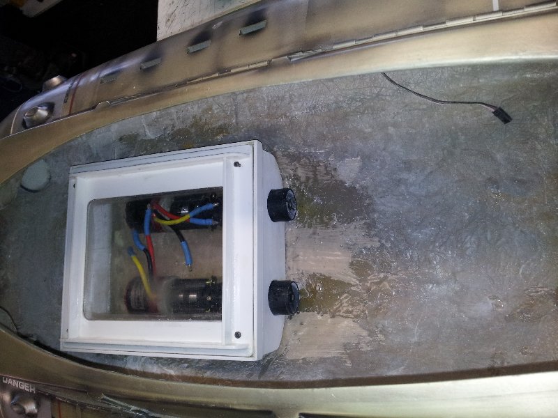 I'm thinking to just Seal up the Sky 1 so no water can get into it, Also re position the equipment inside further back. I'm also thinking of going over to lead acid Batteries which will give me less speed but more duration and are also not bothered by water so much.