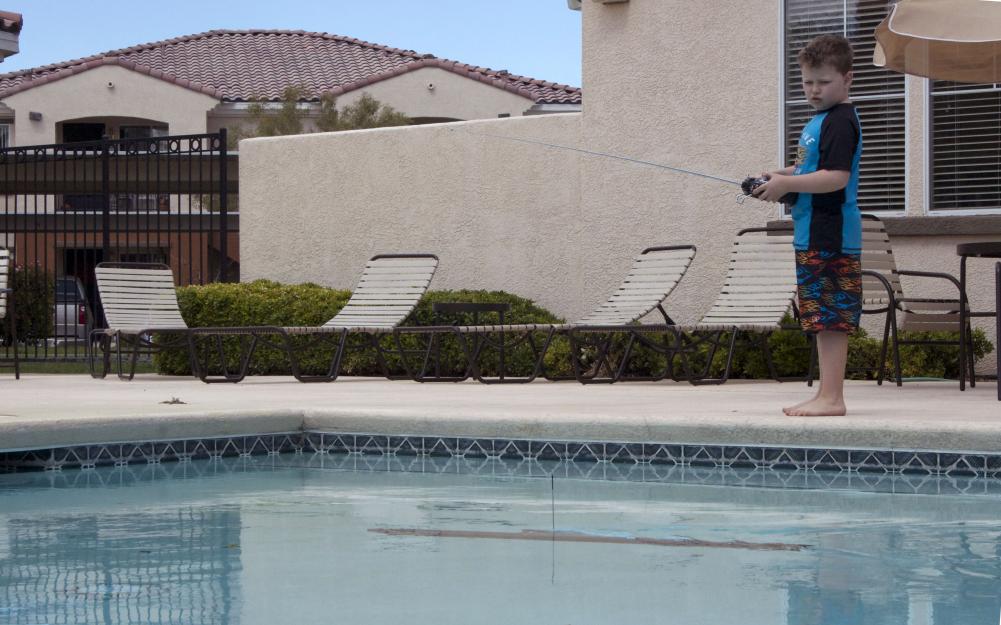 Time to get wet. I was behind the camera, so this is my son commanding the sub.