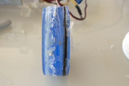 There were pins installed to keep the cylinders from separating while charging with propellent. The downward pushing could cause the areas to shift apart. Those were hidden under the band of silicon, not like this one on the other end.
