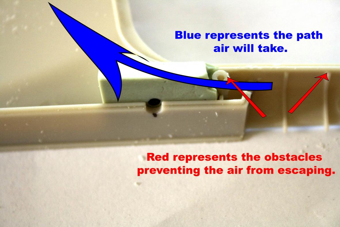 I removed the lower locating/indexing pin in the sail otherwise you loose the abilty to flex the sail if you need to. As for the ribs in the exhaust fairing I haven't had any trapped air issues with mine. But I see what you mean about the risk, though the ribs are so small they'd only trap very small bubbles and with it's movement under water they probably get washed out. Also I left the pin at the aft end of the exhaust fairing on the hull to help stop it flexing when handling the boat.