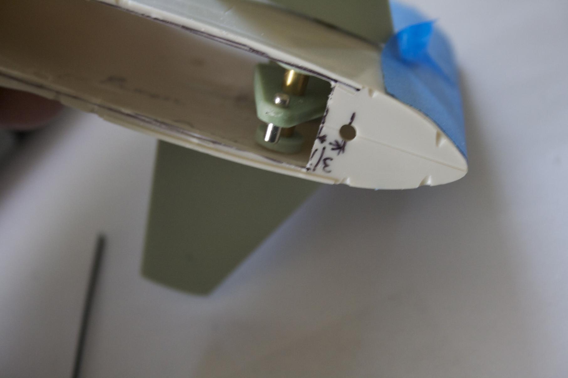 With a small amount of sanding to the outer edge of the sail plane bushing, it fit into the original sail plane hole. Then I used CA. In hindsight, I should have put the fittings kit sails in before gluing because a small misalignment occurred that made on plane slightly tilted aft. I corrected it by filing the hole to the correct angle (we are talking about a degree or two).