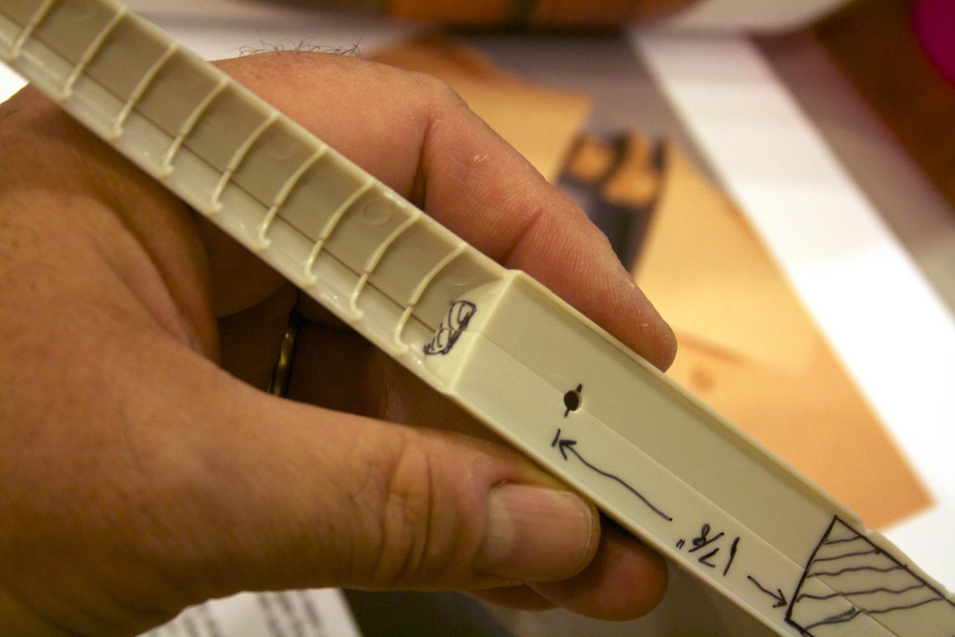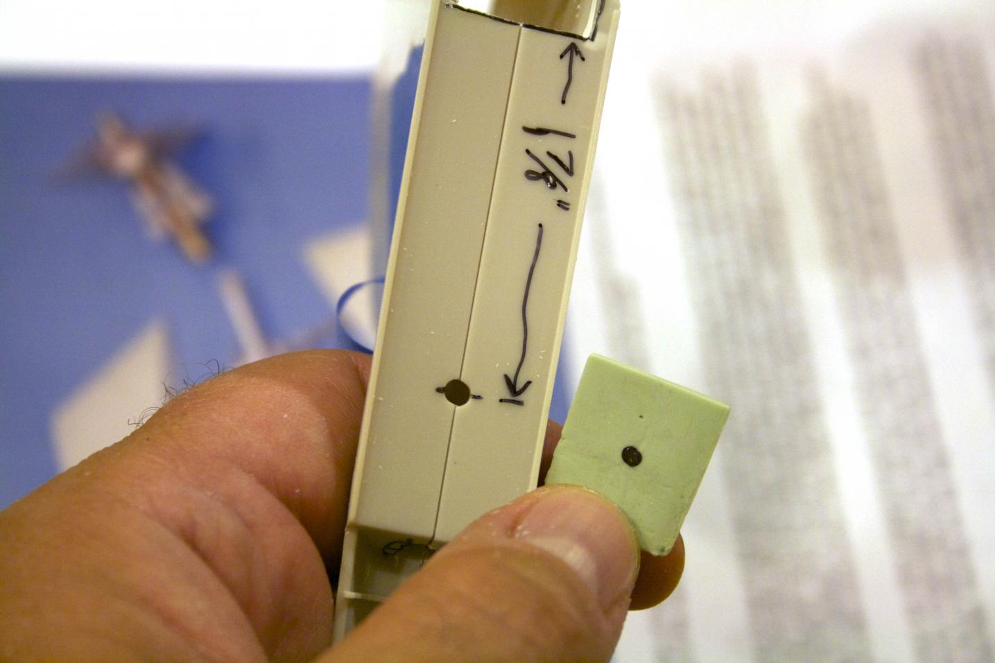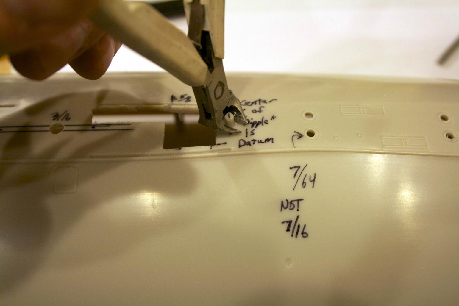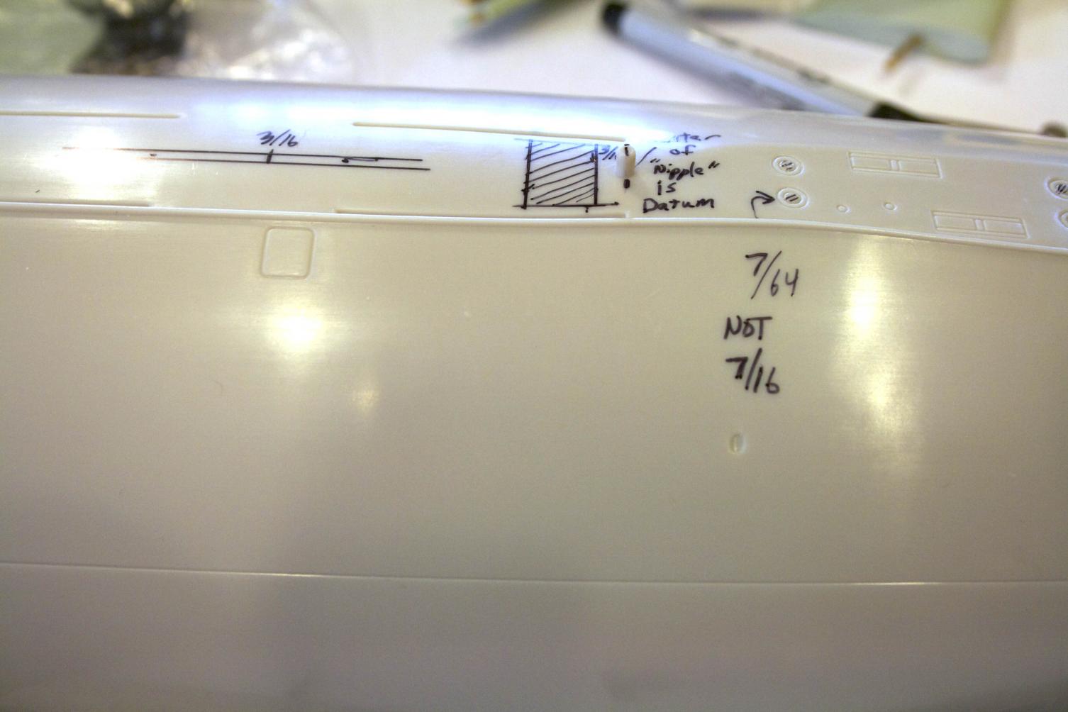 and marked up the sub per the Skipjack instructions downloaded to make sure I understood the instructions and what size drills I needed. Frankly, I had a tough time just reading the instructions - some of the terms used I was not familiar with and working with sub in hand helped a lot.