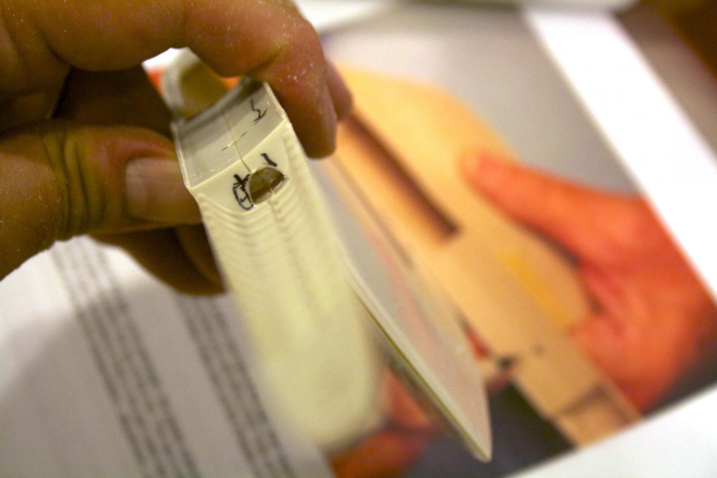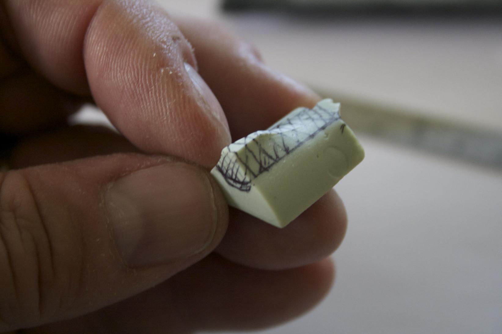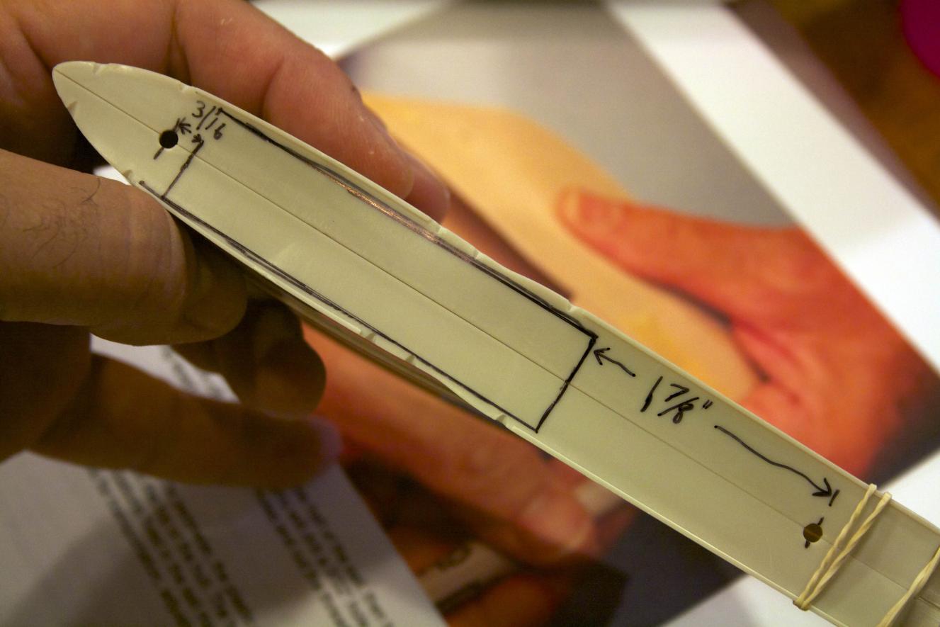 Marked the Z cuts for the hull. Did not have the tool David used to mark the hull, so I improvised (sorry it is burry).