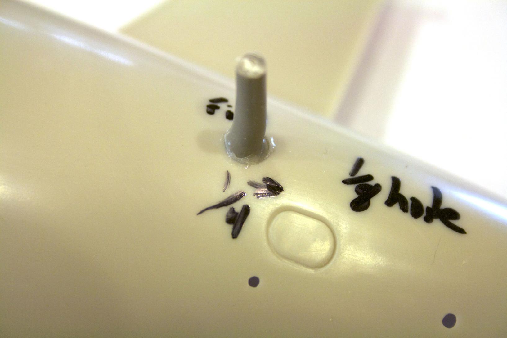 Taking Alec’s advice, the pin in the front is marked (bottom corner in photo).