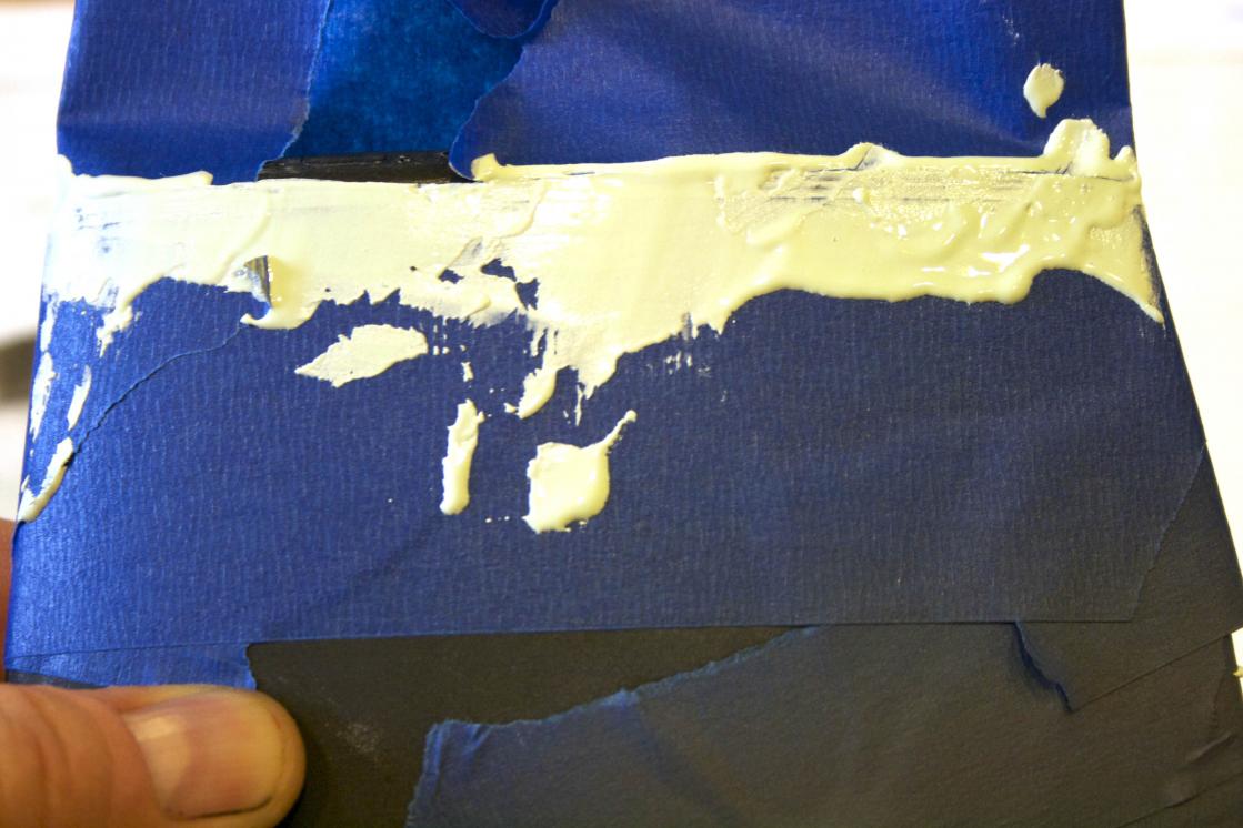Peeled the tape off before it completely solidified. Made it so much easier for sanding.