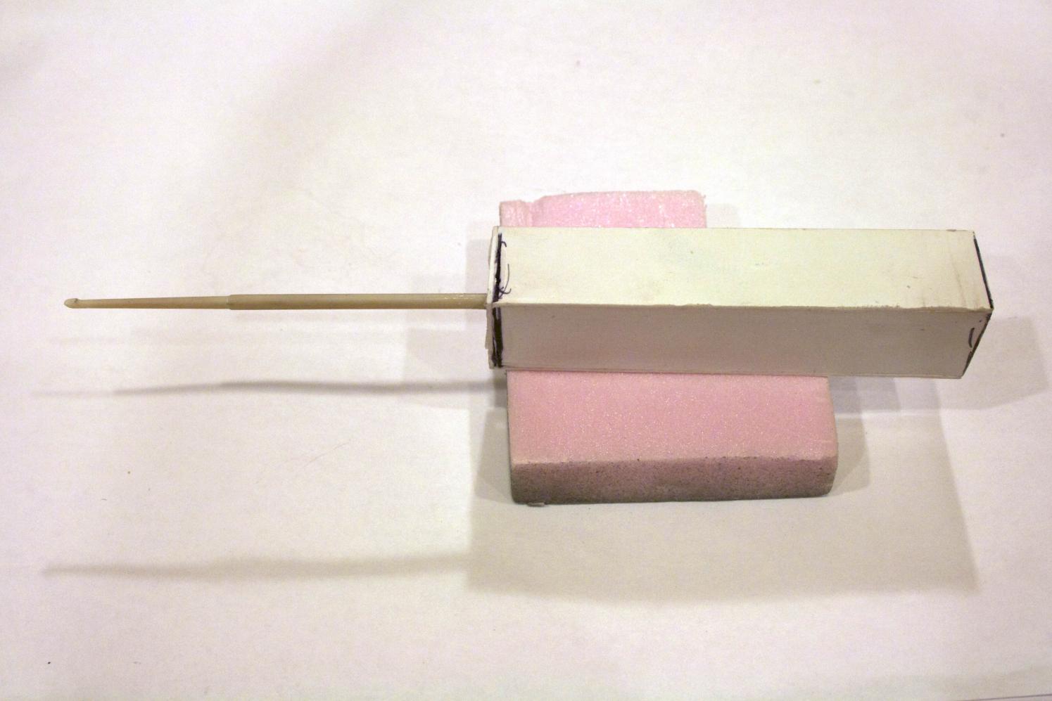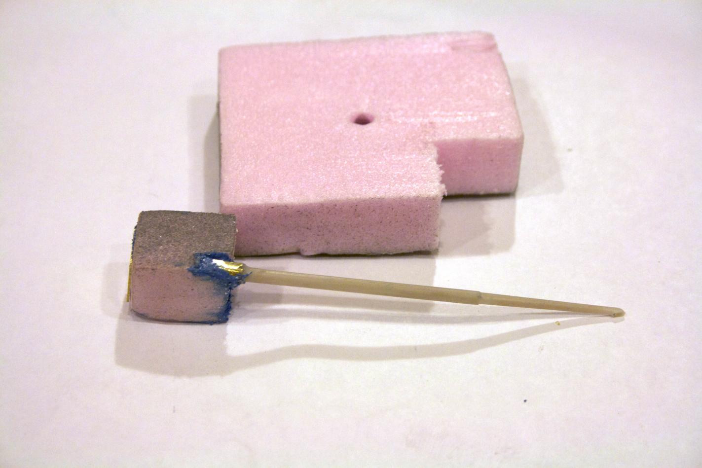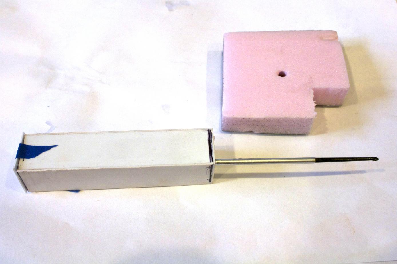 The periscope I mounted on a brass tube to strengthen the end so it could be mounted in the foam block. I am skipping some steps, like how do I know where it goes on the block, but will cover that in a little bit.