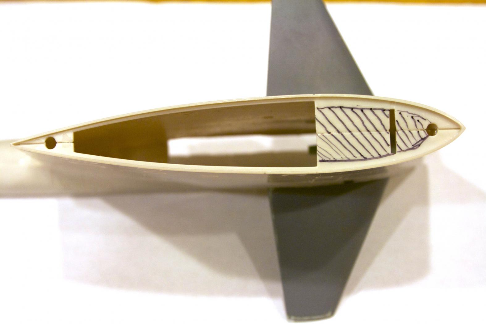 Under the cap of the sail, I cut out that large flat area. Again trying to think of where air might get trapped (before it is sealed up and too late)