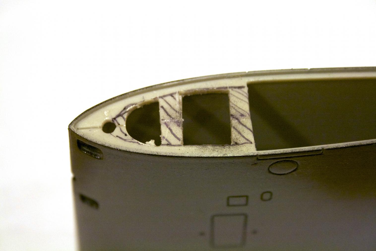 Along those lines, I will cut out the area marked off to prevent a shelf to trap air. If I do not cut out the whole thing, I will then leave some cross members for strength.