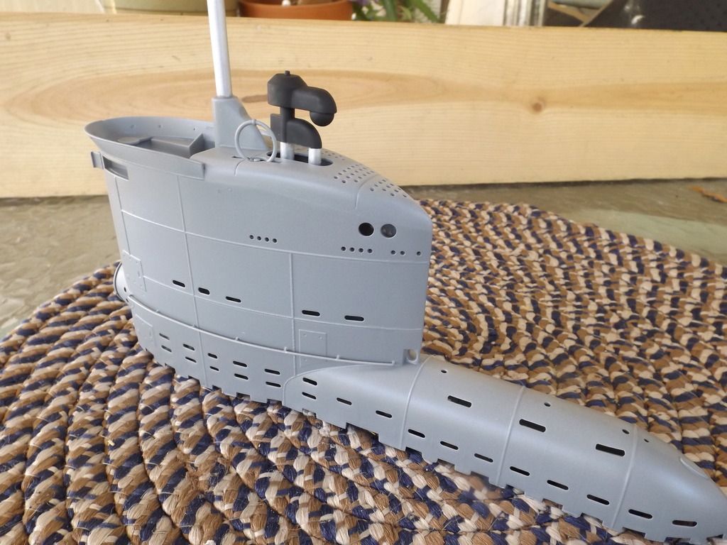Looks like tomorrow was last year. I did get some Dark Grey on the bottom hull. I had to make it, blending light grey with a dark grey(which was too dark) to achieve the desired color. I spent a lot of time filing and sanding all the seams which for some reason seemed to have a slight mismatch, even though I put the pin in the hole during assm. Also, to my embarrassment, something got on the hull in storage, that melted the Evercoat and ran down the side. It didnt hurt the plastic, but whatever it was didnt like the body filler. It smelled like Turpentine or something like that. So I had to reapply evercoat to address what was melted. I got a good primer coat on and the paint came out very well. I still have to tape off and paint the white stripes and then put on some clear flat. Keep in Touch.IT TAKES GREAT INTELLIGENCE TO FAKE SUCH STUPIDITY!Comment