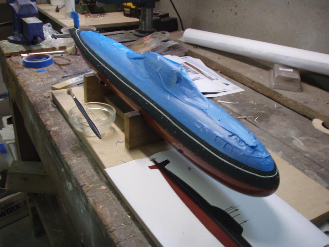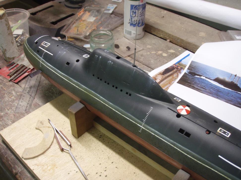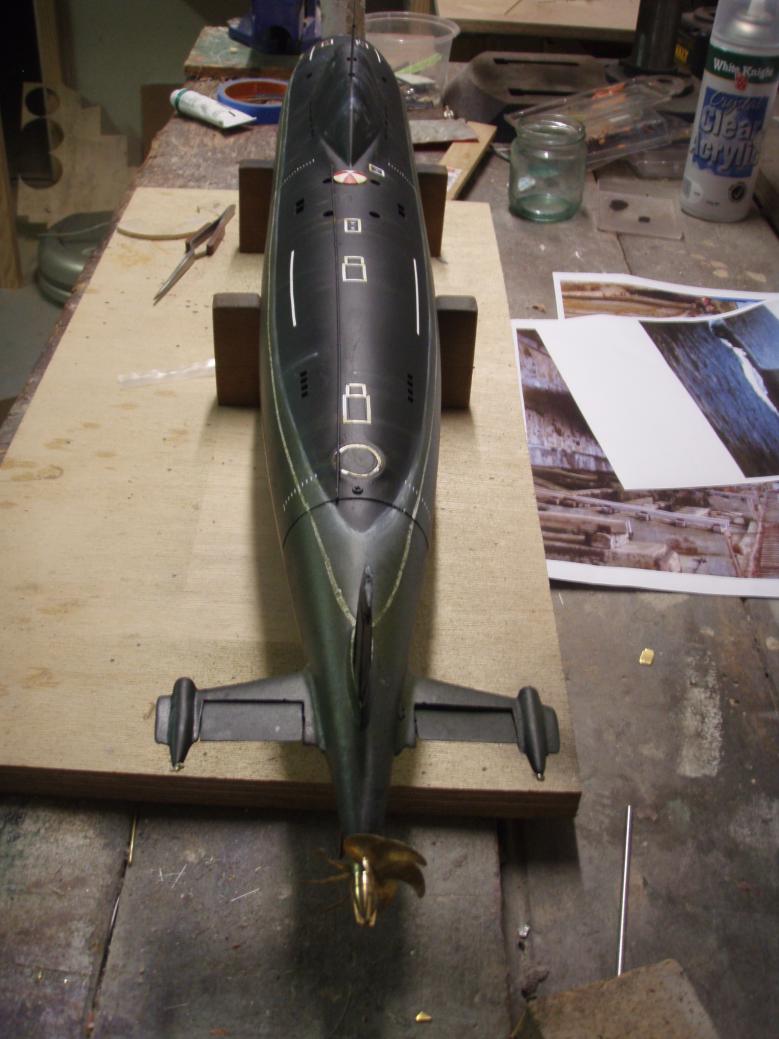 This has been a work in progress for a few months now. It started as a bit of a fantasy but is now taking shape in slow kind of way. The hull is a very well produced GRP item with lots of great detail supplied by Scale shipyard in 1/96 scale. Its been around for quite a while and was revised by Kevin at Rogue Sub Works who produced a slightly more accurate set of rear planes and inlet scoops.